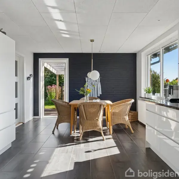 På Gyvelvænget 2 i Hanstholm finder du en indbydende villa på hele 192 m², suppleret af en skøn udestue på 36 m² samt en 18 m² vinkælder. Her er tale om en bolig, der er gennemgående renoveret i gode materialer og fremstår lys, rummelig og indflytningsklar.Boligen er indrettet med fokus på både funktionalitet og æstetik. Det store bryggers med lyst inventar giver plads til hverdagens praktiske gøremål, mens badeværelset renoveret i 2024 imponerer med sit eksklusive udtryk og fingertappede fronte
