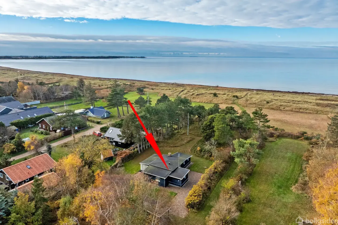 Hyggelige omgivelser, godt naboskab og et område med masser af historie følger med dette skønne fritidshus, som ligger i 1. række direkte til dejlig strand og den fælles strandeng. Fritidshuset ligger ved Bjerge Sydstrand i en af de ældre udstykninger. Historien fortæller at bagermesteren fra Høng og skrædderen fra Ruds Vedby var taget til stranden og havde fundet en plads på engen ved stranden. Men så kom den lokale landmand forbi, og oplyste dem om, at de altså opholdte sig på hans eng. Svaret var "Hvad koster sådan en egn ?" - sådan blev det. Bageren og skrædderen købte engen, som de gennem nogle år fik udstykket til grunde. Vejen vedligeholdes i fællesskab af et lille vejlaug, og det er med til, at det gode naboskab trives og vedligeholdes. Fritidshuset er helt oprindeligt opført af malermester Hansen fra Gørlev, og er ejet af nuværende ejer siden 80-erne. Nuværende ejer har løbende forbedret og udbygget fritidshuset. Derfor fremstår ejendommen i dag, som en fritidsbolig fuld af sjæl og med en unik beliggenhed, som er helt klar til ferie og ren afslapning. Grunden er anlagt som naturgrund, som er bevokset med græs, mos, lyng, gyvel, nåletræer m.m., så den er let at holde. Fra grunden er der direkte adgang til stranden. Selve boligen er indrettet med køkken/alrum/stue med flotte Unoform elementer, brændeovn, udgang til terrasse og dobbeltdøre til udestuen, udestuen fungerer som opholdsstue og har dobbeltdøre til haven, soveværelse med skabe og udgang til terrassen, 2 pæne værelser og badeværelse med lyse fliser, bruseniche og elementer fra Svedberg Classic. Der er trægulve og hvide lofter. Der er ved huset anlagt en stor fliseterrasse, som ligger læfyldt, og danner et ekstra uderum, hvor sol og sommer kan nydes fuldt ud. FRITIDSHUS I 1. RÆKKE DIREKTE TIL STRANDEN OG SKØNNE OMGIVELSER
