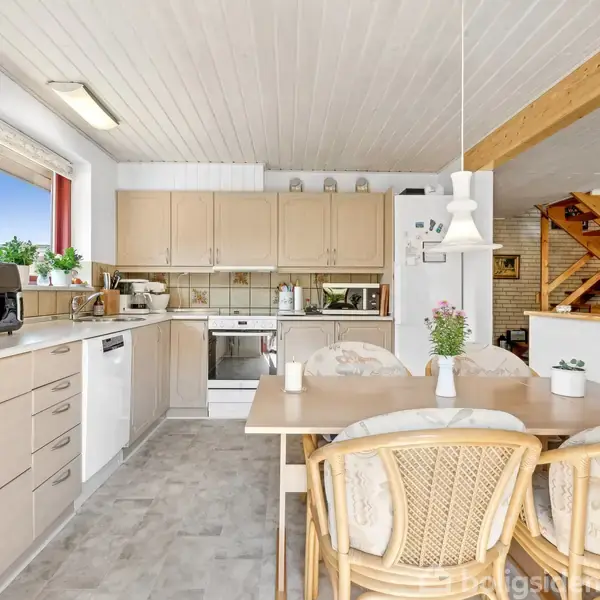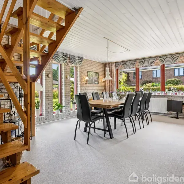 Rummelig villa med god placering i SørvadNu kan I flytte ind i denne villa, der er placeret godt i Sørvad. I får meget hus for pengene med hele 225 m2 fordelt over halvandet plan. Boligen er løbende moderniseret med blandt andet tag fra 2011, mens de fleste af vinduerne og dørene er udskiftet i 2013. I kan vælge at sætte jeres eget præg og skabe det hjem, som I drømmer om. Nu inkluderer huset et køkken-alrum, en stue, fire værelser, to badeværelser, et bryggers samt et disponibelt rum.Hjemmets k