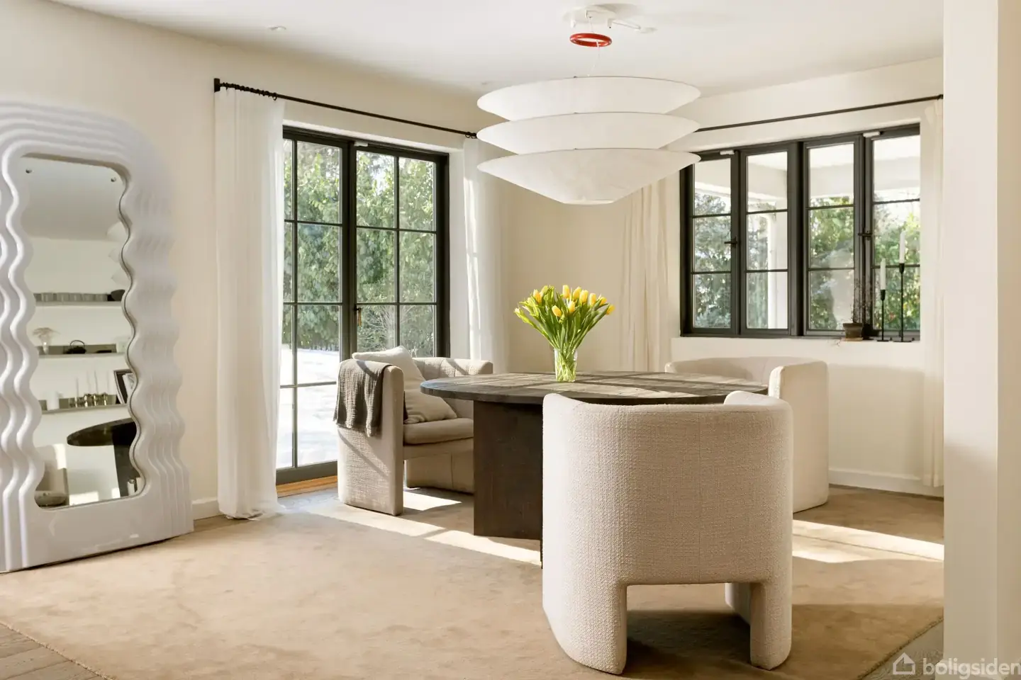 For enden af en lukket vej i det autentiske sommerhuskvarter i skønne Hornbæk ligger Gyvelvej – et af områdets mest eftertragtede adresser. Her er du omgivet af naturens ro og det charmerende, mondæne sommerhusmiljø, hvor tiden synes at stå stille, og hvor husene ofte går i arv. Samtidig er både stranden, havnen og byen blot en kort gåtur væk – den perfekte balance mellem afsondrethed og liv. Huset ligger på en privat, syd/vest-orienteret naturgrund, solrig og helt ugenert, med smuk, enkel beplantning og flere læfyldte opholdsrum under åben himmel. Her følger solen dig dagen igennem og skaber de fineste overgange mellem inde og ude. Dette ekstraordinære luksussommerhus fra 2018 er et hjem, hvor intet er tilfældigt, og hvor hver eneste detalje er gennemtænkt. Materialevalget taler sit eget sprog: italienske fliser, eksklusiv sanitet, specialdesignet snedkerkøkken og smukke trægulve, der binder rummene sammen med varme og karakter. Arkitekturen er inspireret af klassisk New England-stil, fortolket i en nordisk tone med lysegrå træfacader, elegante grå vinduesrammer og tag i shingles. Udtrykket er sofistikeret, men underspillet – præcis som omgivelserne kalder på. Indendørs mødes kølig nordisk minimalisme og varme østlige referencer i en harmonisk fusion af farver, teksturer og overflader. Gulvvarme overalt, pejs og karbad skaber en stemning, der inviterer til ophold året rundt – fra lange sommeraftener på terrassen til stille vinterdage foran flammerne. Velkommen til et sommerhus i særklasse – hvor luksus, æstetik og beliggenhed smelter sammen i en sjælden helhed.