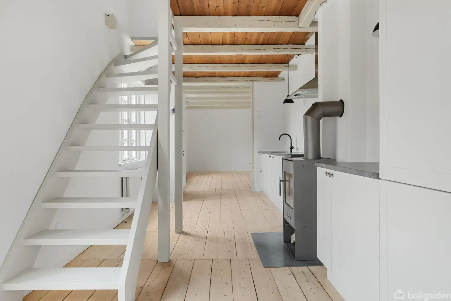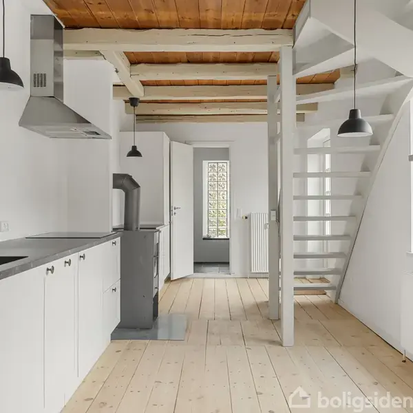 Charmerende baghus med egen terrasse &Living har fornøjelsen at tilbyde denne indflytningsklare lejlighed med bedste beliggenhed på H C Andersens gade. Lejligheden fremstår med synlige bjælker og delvis åben til kip. Der er køkken med lille spiseplads, lækkert badeværelse med gulvvarme og nyt bademøbel fra Køkkenskaberne. I køkken er der brændeovn som kan varme hele stueplan op. Du har nye kontakter, nymalet, gulve afslebet og ludbehandlet, nyere vinduer i træ/alu. Sidst men ikke mindst har du