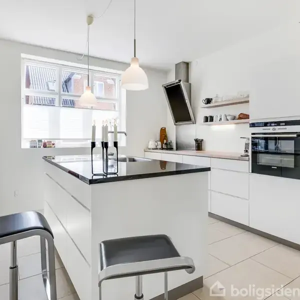 Hvis du drømmer om at bo i midtbyen - og bo godt i midtbyen, så er det lige nu, du skal kigge nærmere på denne fantastiske bolig i Haakonsgade. Her får du nem alt det, som rigtig mange efterspørger, når det drejer sig om en bolig i Herning By. Huset her er opført i 2010, og har derfor et rigtig godt energimærke med karakteren B og som følge heraf en rigtig god energiramme. Kvaliteten er helt i top - huset er fuldmuret og overalt er der valgt gode, gedigne materialer. De flotte store, lyse klinker på gulvet komplementeres på fornemmeste vis af dejligt lyst inventar, store vinduespartier og en fantastisk udsigt til den dejligste vestvendte have med en lækker træterrasse. Her er der virkelig mulighed for at nyde de lune sommeraftener med en koldt glas rosé. Skulle man ønske sig lidt skygge på en varm sommerdag, kan den store, fastmonterede markise køres ud. Som noget helt særligt her i midtbyen, så får man en integreret garage, hvor der er adgang direkte ind i huset, så man kan gå tørskoet ind med indkøbsvarer eller lign. Skulle man i stedet for have brug for en gildesal, et fitnessrum eller måske noget helt tredje, så er der også mulighed for det. INDRETNING: Husets hjerte er uden tvivl det store køkken/alrum, der er gennemlyst og danner den skønneste ramme om familie og venner. Rummet er lyst med højt til loftet og døre direkte ud til den hyggelige have mod vest. Fra de flotte ovenlysvinduer over trappen strømmer dagslyset også ind. Køkkenet er lyst med en elegant sort granitbordplade. Gennem den flotte franske dør er der kig til den dejligste opholdsstue, hvor en god bog eller en film i TV kan nydes i sofaen - også her er der en dejlig udsigt til terrasse og have. I stueplan har man naturligvis også et gæstebadeværelse med bruseniche og en flot entre. På 1. sal er alle rum i fuld størrelse - det vil sige, der er ingen skråvægge her, hvilket giver nogle gode og meget regulære rum. Heroppe er der et dejligt stort soveværelse med fransk altan, et stort skydeskabsarrangement og adgang til et godt walk-in. Et rigtig godt værelse og et fint badeværelse med bruseniche. Derudover er der to gode stuer, som man nemt ville kunne opdele til to ekstra værelser, hvis man har brug for at have en bolig med et soveværelse og tre gode værelser. Hvis du vil bo i byen, i et nyt hus og have alle midtbyens faciliteter indenfor gåafstand, så er det lige her på Haakonsgade 10, du skal bo. Ring til os allerede i dag - vi er klar til at fremvise ejendommen.