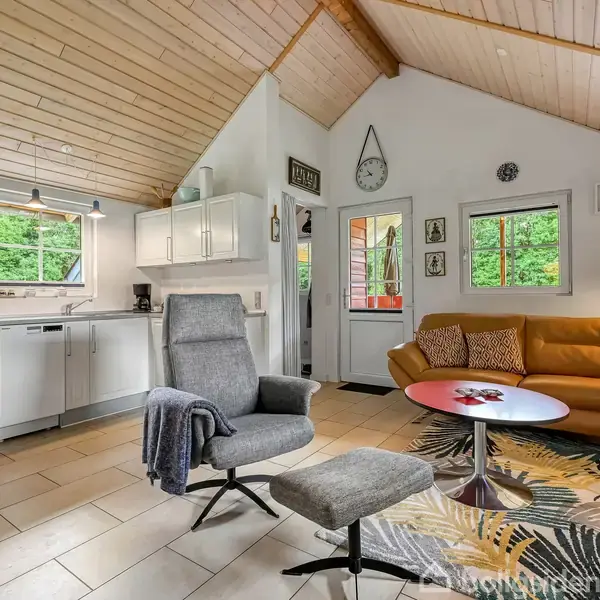 Velholdt fritidshytte med stor terrasse i naturskønne "Hoven Hytteby"