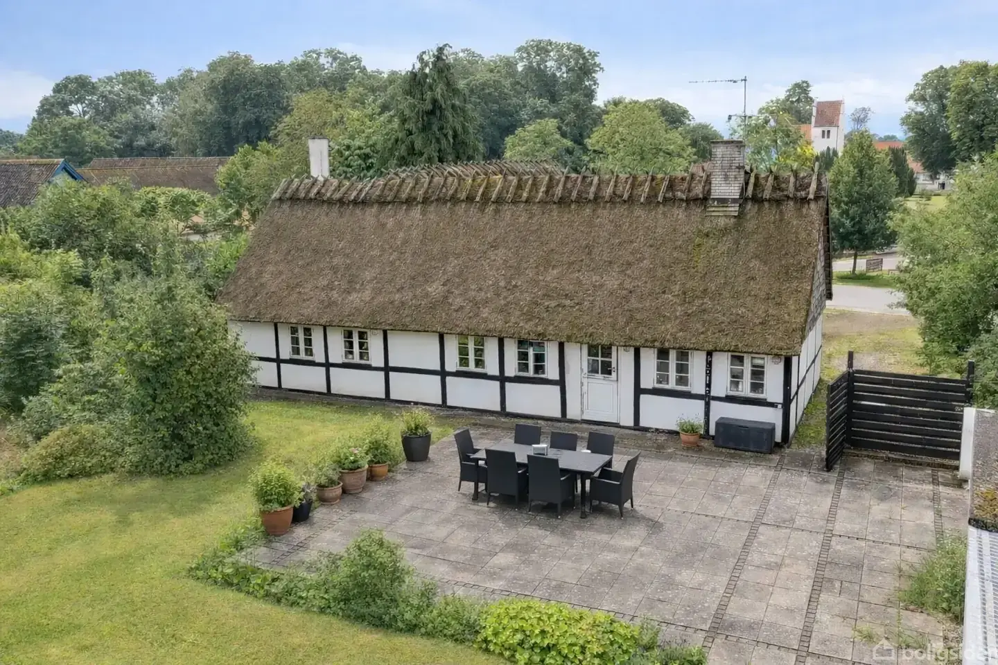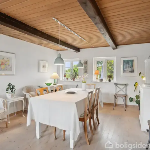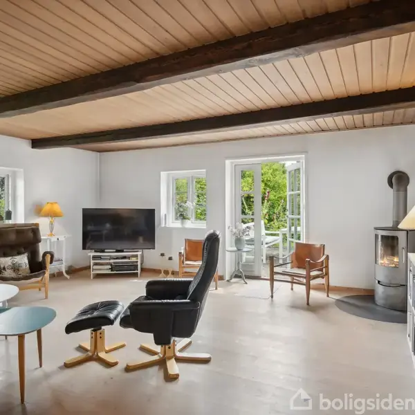 I den lille landsby Hårslev ligger denne hyggelige villa med stråtag. Boligen udfolder sig på 144 boligkvadratmeter og er beliggende på en 2.070 m2 naturskøn grund.Ved ankomst til ejendommen mødes I af en gårdsplads og indenfor bydes I velkommen af en lys entré. I den ene ende af huset ligger boligens 3 soveværelser, hvori det ene har skabsvæg. Fra entréen kan I gå ind i stuen, hvor brændeovnen skaber en hyggelig atmosfære. Fra stue er der udgang til terrasse. I stuen er der dejligt lysindfald o