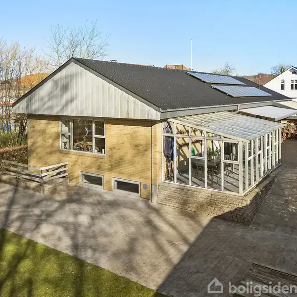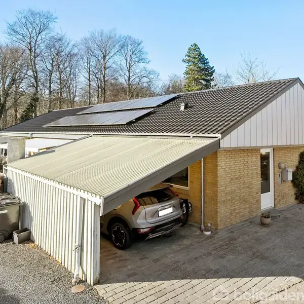 Med en sjældent attraktiv beliggenhed – direkte op til skoven og samtidig i gåafstand til Aabenraa centrum – udbydes denne solide og velholdte gulstensvilla. Ejendommen er opført i 1975 og tilbygget i 1978/79, og byder på hele 176 m² bolig i ét plan samt en yderst anvendelig, opvarmet kælder på 61 m². Boligens indretning er funktionel og gennemført med en god entré og et praktisk bryggers med rigelig opbevaringsplads. Fra køkkenet føres man videre til husets første værelse og fordelingsgangen, der giver adgang til tre yderligere værelser samt et pænt badeværelse med bruseniche og gulvvarme. Husets hjerte er den store stue og spisestue med store vinduespartier og direkte udgang til haven. Herfra er der smukt kig til skoven og adgang til en hyggelig udestue, der forlænger sæsonen. Fra stuen er der nedgang til kælderen, som byder på flere disponible rum, herunder hobby-/værksted, viktualierum og et fleksibelt multirum. Udvendigt fremstår villaen i flot stand med gule mursten, vedligeholdelsesfrie gavle og et ståltag fra 2016. Der er installeret solceller, og huset er hulmursisoleret i 2021 samt efterisoleret på loftet i 2012 – forbedringer, der bidrager til en fornuftig energiøkonomi. Haven er ugeneret og grænser direkte op til skoven. Her er flere solrige terrasser, højbede, god plads til leg og ophold samt et praktisk redskabsskur. Der er endvidere carport til bilen. Ejendommen ligger i den nordlige del af Aabenraa – fredeligt og naturskønt, men samtidig tæt på byens faciliteter. Inden for kort afstand finder I både daginstitutioner, indkøb, friskole og kommuneskole, og bymidten nås nemt til fods eller på cykel. En sjælden mulighed for at bo bynært og naturskønt på samme tid – med masser af plads både inde og ude.