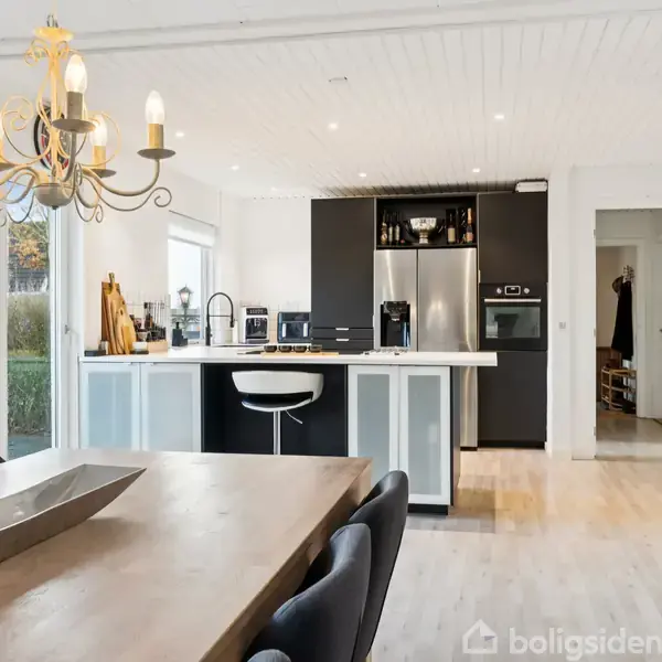 Lyst og indflytningsklart hjem med stort køkken-alrum og sydvendt have På Hæsumvej 37 i Støvring finder du et hjem, hvor hverdagen hurtigt falder på plads.Det store, åbne køkken-alrum er boligens naturlige samlingspunkt – et lyst og indbydende rum i åben forbindelse med stuen, der giver masser af luft, sammenhæng og mulighed for nærvær, uanset om der laves mad, hygges eller slappes af.Det stilrene køkken er fra 2021 og fremstår moderne, funktionelt og klar til mange gode madoplevelser. Den åbne