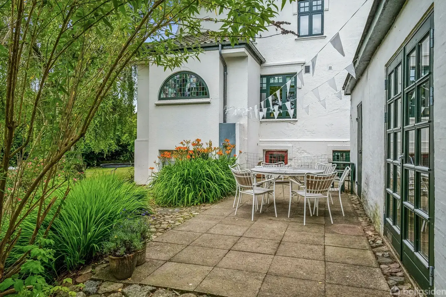 På Haldrupvej 36 i Søvind rejser en imponerende patriciervilla sig som et ægte arkitektonisk statement. Oprindeligt opført i 1909 og gennemgribende renoveret i 2021, står ejendommen i dag som et sjældent eksempel på, hvordan fortidens elegance kan forenes med moderne funktionalitet og æstetik. Hver kvadratmeter bærer præg af dedikation og respekt for husets oprindelige detaljer – fra de højloftede stuer, de blyindfattede ruder, de smukke og originale fyldningsdøre til de flotte plankegulve, der nænsomt er genskabt og bevaret. Villaen har ikke blot gennemgået en klassisk renovering – den er absolut transformeret med øje for design og sans for boligkultur, der også har vakt opmærksomhed i flere indretningsmagasiner, som netop har fremhævet boligens stilsikre forvandling. Her er både køkken, badeværelser og opholdsrum indrettet med tidløse velvalgte løsninger, hvor nutidens bekvemmeligheder integreres ubesværet i det historiske udtryk. Leverummene er åbnet op, fuld af lys og indbydende, med vinduespartier, der lader lyset danse over fladerne. Her er nu skabt en planløsning, der passer til den moderne familie og stadig er fyldt med charme og hjemlighed. Foruden 4 værelser, 2 badeværelser, hall samt stort køkken-alrum og stue i åben forbindelse, får man også her en funktionel og praktisk kælder med plads til både vask, hobby, værksted og opbevaring. Udhusene rummer alt fra værksted til havestue – perfekte til kreative projekter eller stille stunder. Haven er frodig og privat, med gamle smukke træer, blomstrende bede og små kroge, der indbyder til ro og udeliv. Herfra er der nem adgang til nærliggende grønne områder, bakkede landskaber og selvfølgelig fjorden – et ideelt sted for både hverdag og weekend, hvor naturen kan opleves i al sin nære og levende form. Samtidig har man kun få minutters kørsel til Horsens og hurtig adgang til Aarhus og Odder, hvilket gør beliggenheden både fredelig og praktisk. Haldrupvej 36 er mere end blot en adresse – det er et hjem med historie, sjæl og arkitektonisk styrke. En bolig, hvor fortiden er løftet ind i nutiden med ære og omtanke – og hvor hverdagens liv kan leves i smukke og inspirerende omgivelser.