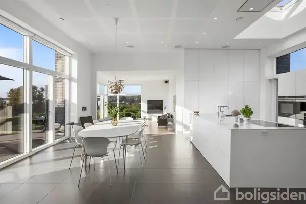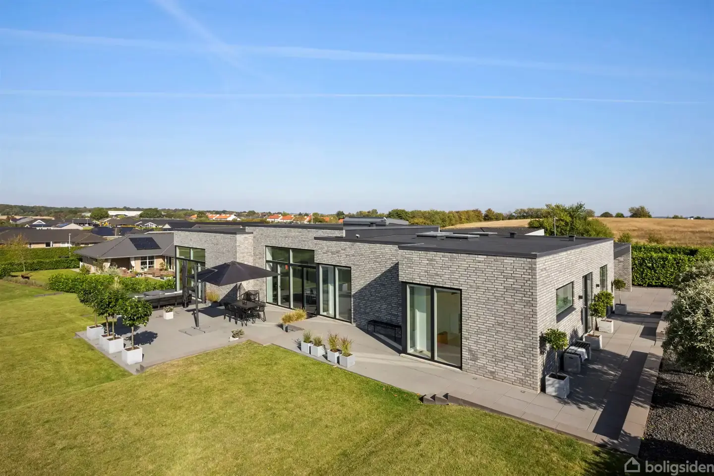 Drømmer du om en unik, moderne villa i det eftertragtede Digtervejskvarter i Næstved? Så er det her, din søgning ender, og din drøm begynder. På smukke Halfdan Rasmussens Vej 102 venter en fantastisk arkitekttegnet funkisvilla i forskudte plan, opført i 2017 og nu omgivet af en frodig, velanlagt have og terrasser, der indbyder til liv og samvær. Med et energieffektivt jordvarmeanlæg, har sælger en samlet årligt udgift til strøm på mellem kr. 15-18.000. Det dækker: Varme, husholdning og elbil. Så dette hjem er både moderne og miljøvenligt. Beliggenheden er ideel. Børnene har nem adgang til en af byens bedste folkeskoler via trygge stisystemer, og du befinder dig i kort afstand til centrum, hvor caféer, specialbutikker, Axeltorv og kulturelle oplevelser venter. Med 211 gennemtænkte kvadratmeter på en 1.117 m2 grund, ligger boligen i første parket til et smukt vestvendt sø- og regnvandsbassin. En rummelig overdækket vognport på 61 m2, inklusive et isoleret udhus, giver plads til to biler og ekstra opbevaring. Et hjem med arkitektonisk elegance Villaens ydre præges af lys grå Petersen teglsten, tagpaptag med hældning og hele syv ovenlys, der sammen med lavenergiruder i træ/alu sikrer et smukt og naturligt lysindfald. Inde venter en lys og rummelig entré med en imponerende gangbredde på 1,80 meter. Herfra træder du ind i børne-/ungdomsafdelingen, hvor tre store værelser alle har direkte adgang til terrassen. Badeværelset er stilrent med bruseniche, bademøbel og væghængt toilet. Et praktisk bryggers, der fungerer som daglig indgang, giver dig mulighed for at komme tørskoet hjem fra vognporten. Tre trin ned, og du træder ind i husets hjerte: et fantastisk køkken/alrum på ca. 45 m2 med elementer fra Svane Køkken. Loftshøjden på 3,5 meter og de store skydedøre til både morgen- og aftenterrasser skaber en enestående følelse af rum og lys. Det tilhørende spisekammer, til ekstra indkøb eller afsætning, skaber en ro i rummet. Endnu tre trin ned, og du finder dagligstuen og forældreafdelingen. Stuen har ligeledes en imponerende loftshøjde og to udgange til terrasse og have. Herfra har du en helt unik udsigt over søen – en udsigt, der skifter udtryk med årstiderne og aldrig bliver ens. Forældreafdelingen rummer et stort soveværelse med udgang mod øst og masser af skabsplads. Badeværelset er en oplevelse i sig selv med dobbelt bruseniche, bademøbel og væghængt toilet. Materialer og komfort i topklasse Huset er udstyret med klinkegulve i gang, bad, bryggers og køkken, mens værelser og stue har smukke plankegulve. Akustiklofter, eksklusive Vola-armaturer, indbygget B&O, fjernbetjente gardiner og ovenlys understreger hjemmets kompromisløse kvalitet. En have i fem niveauer – skabt til nydelse Den gennemtænkte have er anlagt i fem forskudte plan, der sikrer en nem og vedligeholdelsesfri udendørsoplevelse. Mod syd/vest finder du en stor fliseterrasse på 50 m2 foran alrummet og en 25 m2 terrasse i vedligeholdelsesfrit materiale ud for stuen. En morgenterrasse på ca. 40 m2 giver mulighed for at nyde dagens første solstråler. Uanset hvornår på dagen du ønsker at invitere gæster, kan I samles på en terrasse, hvor solen skinner. Denne villa gemmer på utallige smukke detaljer, der kun kan opleves ved en fremvisning. Her kan drømmen om et nyt, moderne hjem blive til virkelighed. Skal det være dit? Når du køber en bolig gennem EDC, har du mulighed for at få en gratis flytteforsikring. Ønsker du denne, skal du sende en mail med "Ja tak" til [email protected]
