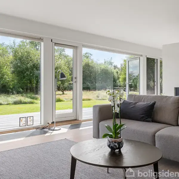 Her får I en liebhaverejendom uden bopælspligt, der med rette kan betegnes som unik. Ejendommen er tegnet af arkitekten Jørgen Hovind fra den københavnske tegnestue Vandkunsten. Arkitekturen er gennemtænkt til mindste detalje, det opleves blandt andet ved måden naturen bydes indenfor på. Lyset strømmer smukt og naturligt ind i rummene gennem de store vinduespartier, der strækker sig ned langs husets ene side, så naturen konstant er nærværende. Det skaber en rolig atmosfære, hvor hverdagens tempo