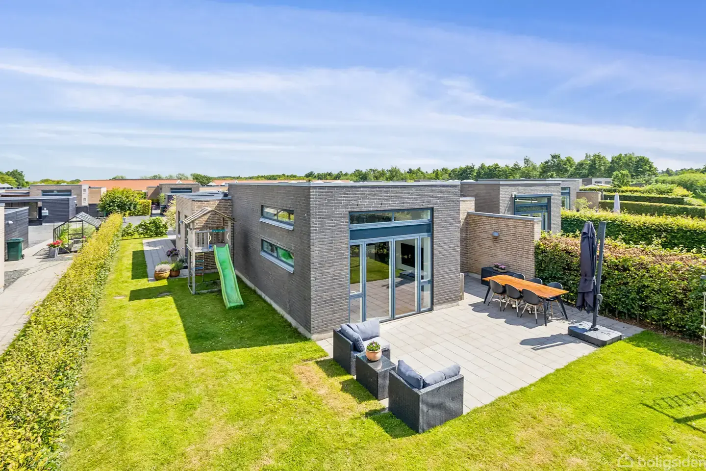 Dette lysfyldte og indbydende hus på Halmøvænget 6 i Drejens byder på 143 m² velindrettet bolig i ét plan med tre værelser og to badeværelser – perfekt til børnefamilien. Boligen er opført i 2012 og har en solrig, nemt vedligeholdt have med fliseterrasse og græsareal, som indbyder til både sommerens grillaftener og børns leg. De lyse, rummelige rum er skabt med fokus på funktionalitet og flow i hverdagen – her får I naturligt dagslys ind over køkken-alrum, stue og de tre værelser. I entré og br