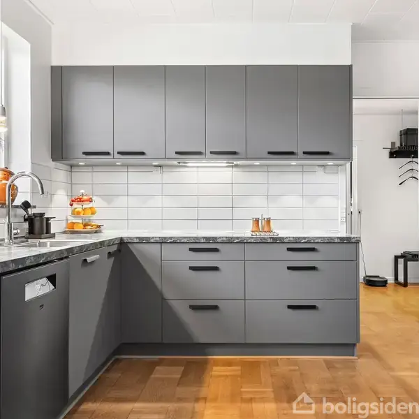 På en rolig villavej i cykelafstand af Randers centrum ligger denne smukke og moderniserede villa fra 1971. Med sine 196 m² i ét plan er den et oplagt valg for familien, der ønsker god plads, masser af lys og en elegant indretning. Allerede i den særlige entré mærker man husets atmosfære – et indbydende velkomstrum, hvor proportioner og detaljer spiller smukt sammen. Herfra er der adgang til det lækre køkken i gråt design med hvide fliser. Køkkenet ligger i naturlig forbindelse til spisestuen, og man kan let åbne op for et større leverum. Den store opholdsstue har store vinduespartier og en væghængt brændeovn, der giver et lyst og moderne udtryk. Boligen rummer et stort soveværelse og tre yderligere værelser – ideelt til børnefamilien. Badeværelset fra 2018 byder på fritstående badekar, stor bruseniche, væghængt toilet og gulvvarme. Hertil et moderniseret bryggers og et charmerende gæstetoilet med originale fliser som et fint nik til husets historie. I 2018 er der foretaget en omfattende renovering med nye vinduer og døre, zinkinddækninger, tagrender, skorsten og brændeovn. De flotte parketgulve, som går gennem næsten hele huset, skaber et harmonisk og elegant udtryk. Fra entréen er der udgang til en flot anlagt fliseterrasse med trapper til den lukkede have, der indbyder til ro og udeliv. Haven er velanlagt og solrig, og garagen rummer god plads til både bil og opbevaring. Området er særdeles attraktivt med kort afstand til skole, daginstitutioner, indkøb og bybus. På cykel når man Randers centrum på ti minutter, og pendleren har hurtig adgang til motorvejen. En villa med sjæl, stil og komfort – lige til at flytte ind i.