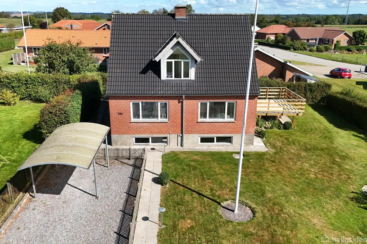 Midt i det charmerende Hvilsom finder du denne flotte indflytningklare rødstensvilla, der byder på hele 126 m² bolig og yderligere 73 m² anvendelig kælder – her får du et hjem, der rummer mange muligheder. Udendørs er der en indkørsel med gode parkeringsforhold og en fritstående carport, der sætter en flot ramme om huset.Indenfor i stueetagen bydes der velkommen i en lys entré, hvor trappen fører op til første sal. I forbindelse med entréen er der adgang til et badeværelse med bruseniche - og vi