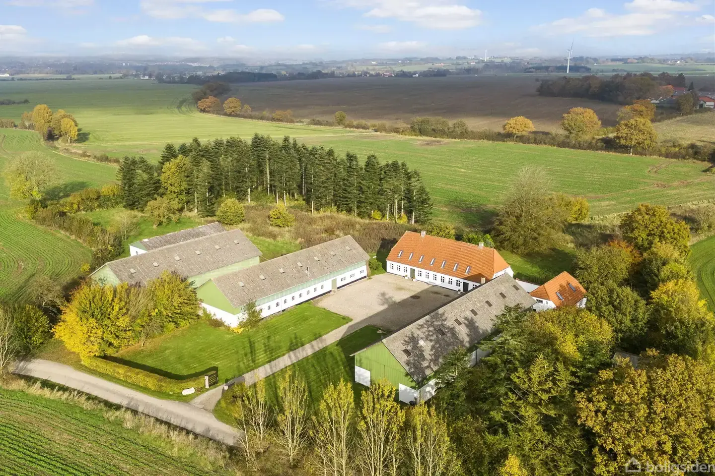 "Hanneslund" - en karakteristisk Østkyst gård. "Hanneslund" ligger mellem Haderslev og Christiansfeld og har ikke været i frihandel siden 1940érne og nuværende ejer er tredje generation på ejendommen. Selve stuehuset som er opført i 1843 gennemgik i årene 2015/16 en gennemgribende renovering/modernisering fra A til Z med respekt for husets æstetik og fremstår i dag som et moderne hjem med bl.a. gulvvarme, massivt plankegulv og synlige bjælker. Senest har ejendommen fået ny energikilde i form af jordvarmeanlæg og energimærket viser A2010. Stuehuset vil med sit store køkken med tilhørende spisestue, 4 badeværelser og 6 værelser kunne tilfredstille de fleste familier som drømmer om et liv på landet - indretning af lieberalt erhverv i en enkelt driftsbygning, udlejning af aftægtsboligen eller oprette hestehold på ejendommen og brug de 3,1 ha. jord ved bygninger til hestefolde m.m., Er du meget jagtinteresseret, kan 11,5 ha. med god jagt tilkøbes - Alt sammen er muligt her på Hanneslund. Ejendommen udbydes TIL SALG med et grundareal på 4,6630 ha., med mulighed for tilkøb af yderligere jord.