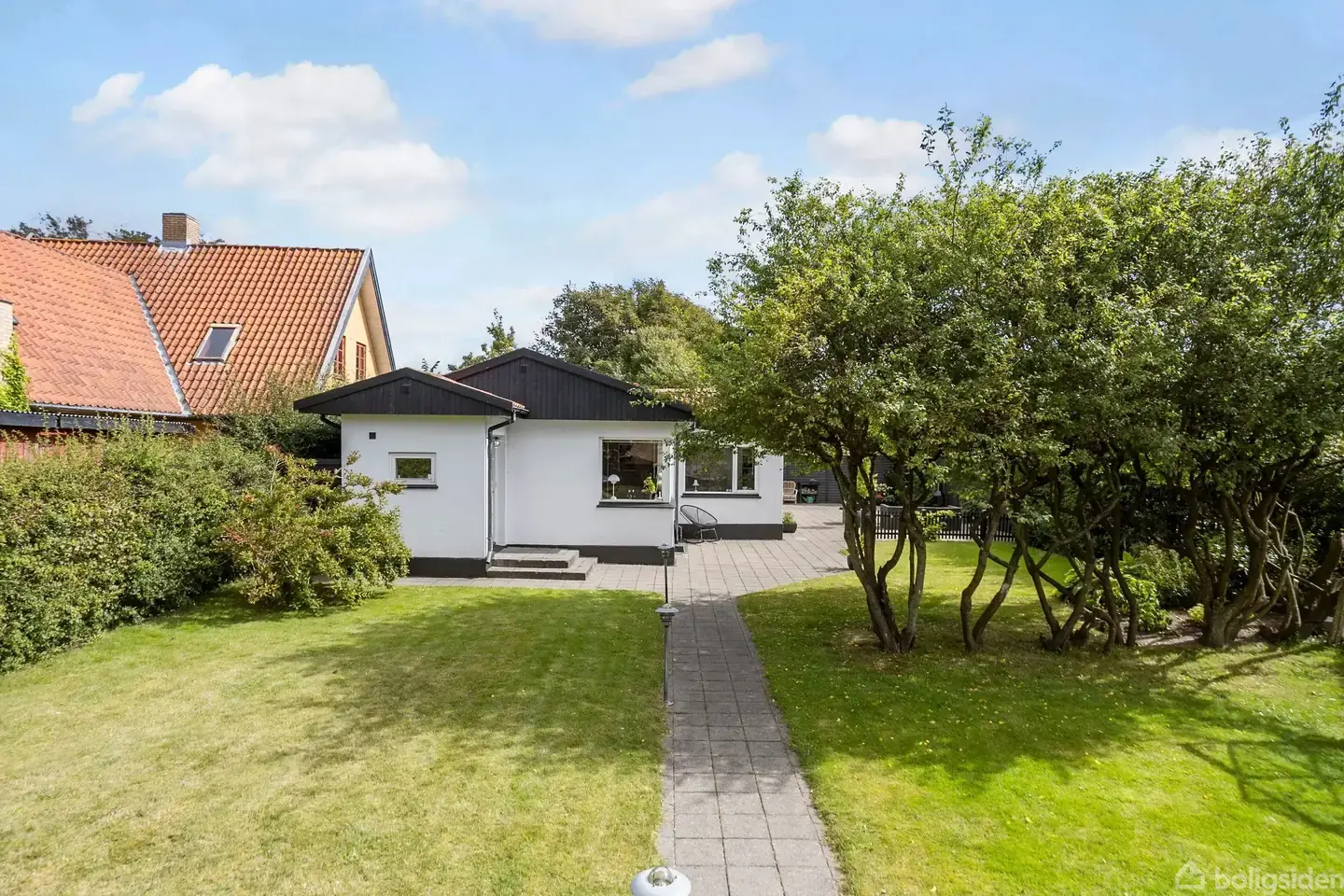 På Hans Chr. Høyrups Vej 16 i Hjørring finder du en bolig med sjæl og charme, opført i 1934 og beliggende midt i byens centrum. Her er du tæt på alt, hvad Hjørring har at byde på – caféer, handelsliv og kultur kan nås på få minutter til fods, og når du ønsker en pause fra byens puls, er både Nordre Anlæg og Hjørring Bjerge inden for en kort gåtur, hvor grønne områder og naturskønne omgivelser venter. Boligen er indrettet med en lille entre, der åbner op til en rummelig stue i åben forbindelse med køkkenet, hvilket giver et lyst og indbydende samlingspunkt for hverdagens liv. Herudover rummer huset to gode værelser, et badeværelse samt et praktisk bryggers/vaskehus. Fra stuen er der adgang til en ugeneret have, der overrasker med hyggelige kroge og flere terrasser, hvoraf en er overdækket. Herfra er der ligeledes nedgang til kælderen, som i dag anvendes til opbevaring og teknik. Kælderen rummer hele fem disponible rum, hvilket giver mange muligheder for den kommende ejer. Til ejendommen hører også en garage på 30 m², der giver god plads til både bil og ekstra opbevaring. Alt i alt får du her en bolig med en sjældent kombination af central bynær beliggenhed og private, rolige udearealer, hvor du kan nyde det bedste fra begge verdener.