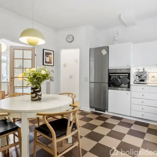 Velkommen i denne flotte og veldisponerede ejerlejlighed i 2 spændende etager. Her får du hele 102 m2 lejlighed, henholdsvis 70 m2 boligareal og 35 m2 i den højloftede, nedre etage. Derudover hører der et kælderrum på 3 kvm til lejligheden. Lejlighedens type er meget efterspurgt i kvarteret, idet den ligger i stueetagen og derfor har let adgang til gårdhaven. Boligen fremstår lys i alle rum, indbydende og med en rigtig god og åben planløsning. Ikke mindst er her meget højt til loftet på begge etager. Stueetage (70 m2): Her er åbnet op mellem stue/spisestue, hvilket giver en god sammenhæng mellem det rummelige spisekøkken samt den hyggelige sofastue. Hertil får du en god entré, et fornuftigt værelse/kontor samt et ekstraordinært stort badeværelse med brus, gulvvarme, vindue, håndklæderadiator samt vaskefaciliteter. Fra sofastuen kommer du til: Underetagen (35 m2): 2 særdeles charmerende rum med fritlagte bjælker, højt til loftet og god stand. Sælger benytter etagen til soveværelse samt luksus walk-in garderobe. Kælderen er ikke godkendt boligareal, hvilket doger helt sædvanligt for denne boligtype og i øvrigt normalt for kvarteret. Det smukke byggeforeningshus består af 3 lejligheder, hvor der er fælles brugsret til hyggelig gårdhave bag ejendommen. Huset fremstår pænt og indbydende med termovinduer samt udskiftet tag (er betalt, så ingen fælleslån). Gårdhaven er en dejlig oase, sommer som vinter, og ikke mindst også plads til cykel og barnevogn. Fra lejlighedens køkkenalrum kan man nyde udsigten over kvarterets grønne haver og kvarteret meget indbydende med flotte vejtræer såvel som et godt naboskab. Både ejer- såvel som grundejerforening er særdeles aktiv og er en hyggelig enklave af klassiske byggeforeningshuse opført i Bedre Byggeskik med grønne haver og det gode naboskab i højsædet. Kvarteret og gaderne er ekstremt atmosfærefyldte og grundejerforeningen "Lyngbyvejskvarteret” er en hyggelig oase af byggeforeningshuse med grønne haver og et godt naboskab, hvor der snakkes over stakittet og børnene leger på gaden. Hvert år afholdes der både loppemarkeder, sommerfester på vejene, fastelavn og Halloween. Her er også beboerforeningen ’Ulrik’, der har attraktive aktiviteter såsom fællesspisning og yoga, samt flere fællesskaber (fx løbe-/senior-/krea-klub m.fl). Der er desuden cafemiljø blot få hundrede meter væk (fx Design-Cafeen) og indkøb nærmest for enden af gaden (Føtex, Meny, Netto, REMA1000, Lidl og den lokale fiskehandler). Tæt ved er også Fitness, busser samt gode trafikale tilkørselsforhold i alle retninger. Gåafstand til Metrostation Vibenshus og S-tog ved Ryparken S-station, samt grønne arealer i Fælledparken såvel som Kildevældsparken samt badestrand i Svanemøllebugten. Velkommen til.