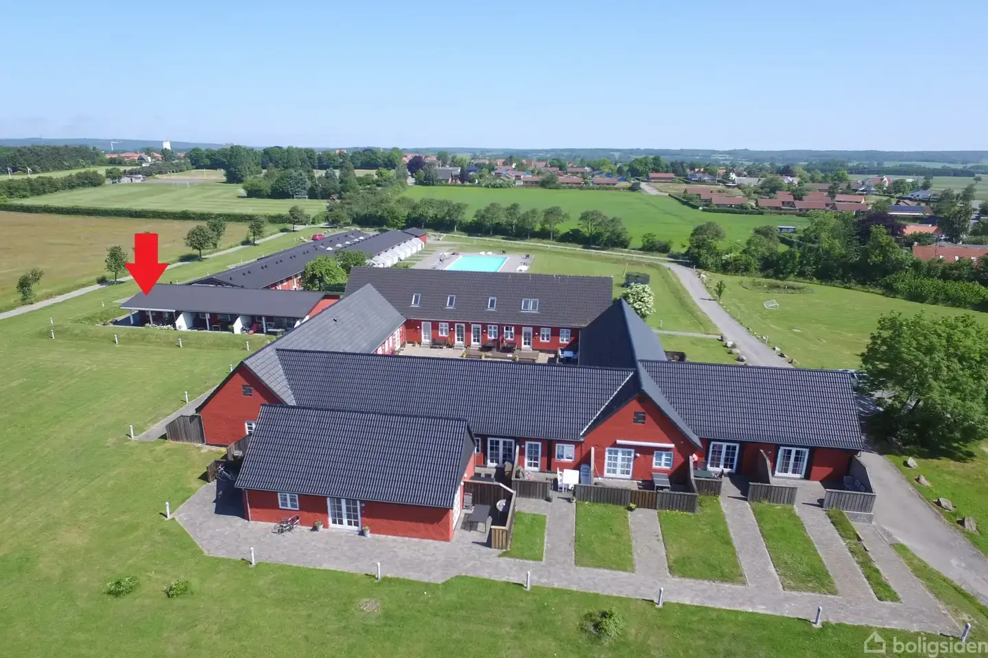 Skøn ferielejlighed venter jer på Haregade 14 på, Dams på Bakken, lige udenfor Aakirkeby. Lejligheden er en hjørnelejlighed på hele 66 kvm. Planløsningen fordeler sig over to værelser, to badeværelser, et lille bryggers og et åbent opholdsmiljø med køkken-alrum og stue. Hertil er der en solrig, vestvendt terrasse med sol fra morgenstund til solnedgang.Den vestvendte fliseterrasse er delvist overdækket, og med den elektriske markise er der mulighed for en overdækket terrasse, hvilket giver jer