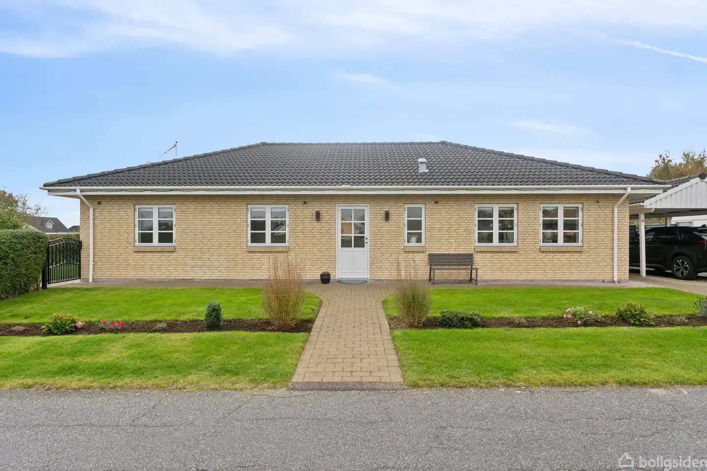 Velholdt villa 132 m² fra 2001 på 780 m² grund i roligt, børnevenligt kvarter Morgenlyset strømmer ind gennem husets vinduer og skaber et indbydende førsteindtryk af denne velholdte villa. Boligarealet er 132 m², opført i 2001, og ligger på en 780 m² stor grund. Huset indeholder i alt 3 værelser hvoraf 2 fungerer som soveværelser, 1 stue, 1 badeværelse samt separat bryggers og gæstetoilet. Facaden i lys mursten og carporten giver en nydelig, lavpraktisk indgang til ejendommen. Indretningen er p