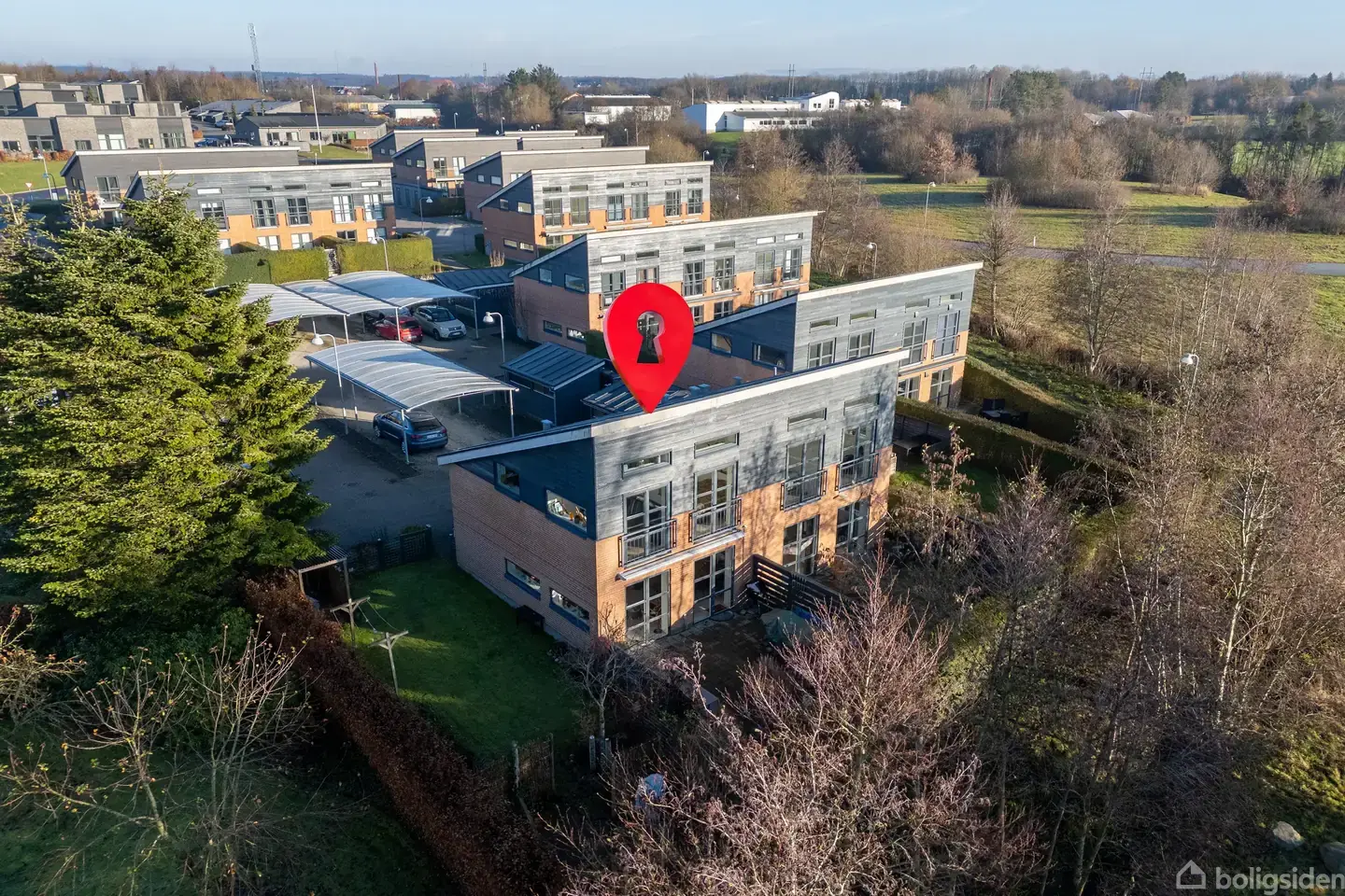 Velkommen til en andelsbolig i særklasse. Her får du en af de absolut bedst beliggende boliger i hele foreningen, placeret helt for enden af vejen og direkte op til det grønne naturarealer med lille sø og et fredfyldt kig mod naturen. Det er svært at finde mere rolige og ugenerede rammer end her. Boligen er gennemført godt indrettet uden spildplads og passer perfekt til både den lille familie og den enlige, der ønsker en tryg og overskuelig hverdag. Allerede i forgangen mærker man den gode plad