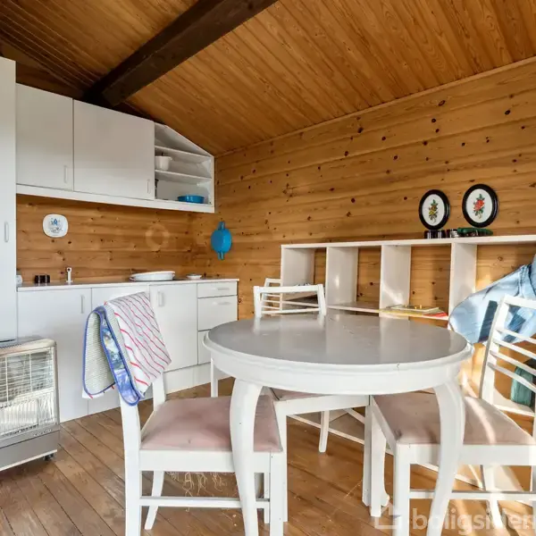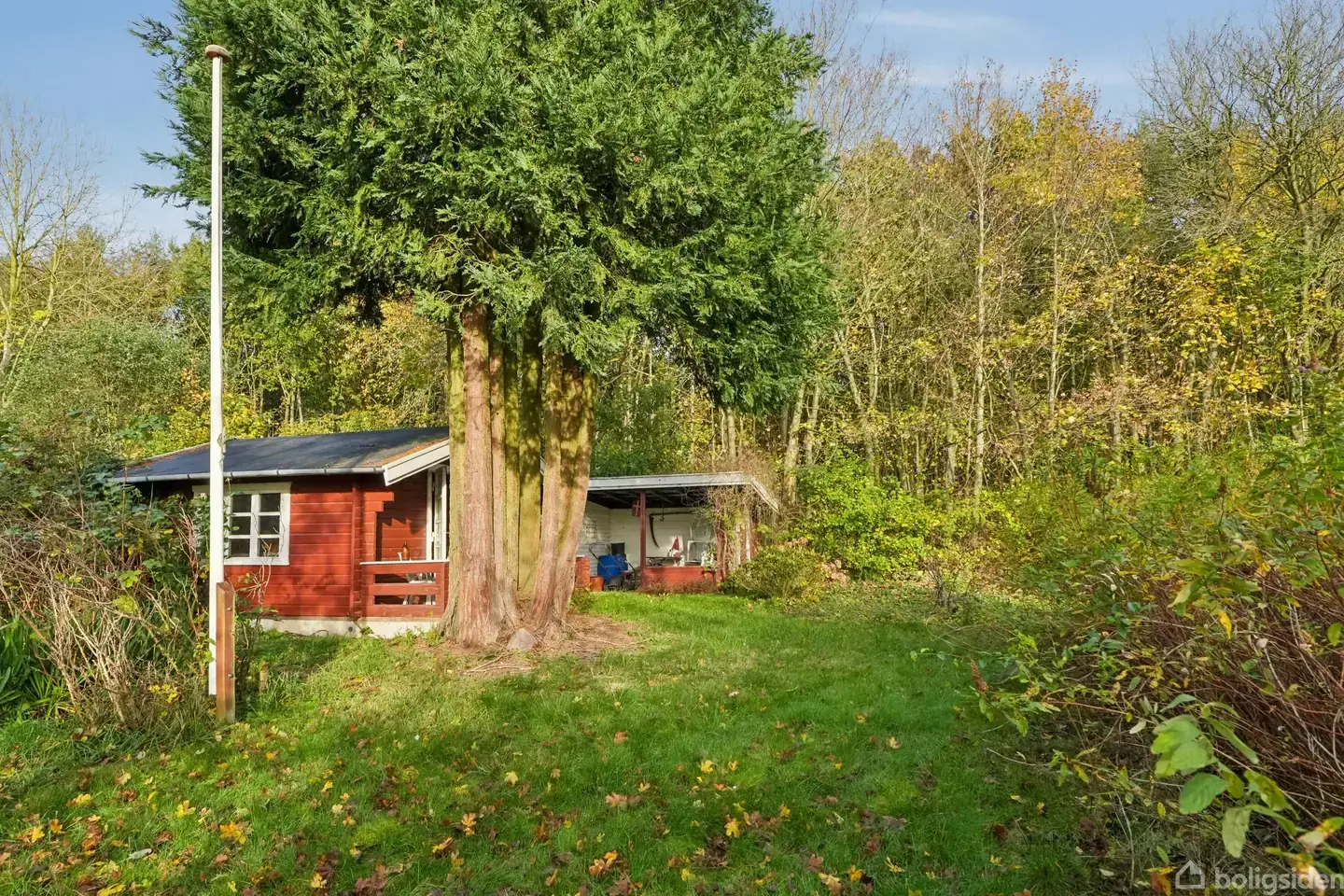 Idyllisk kolonihavegrund ved Randal Skov i FredericiaPå en stor grund fyldt med frugttræer og bærbuske klos op ad Randal Skov finder I dette charmerende kolonihavehus, som nu kan blive jeres. Udover selve huset får I grunden med i købet, idet I her bliver en del af Grundejerforeningen af 1956. Takket være naboskabet med skoven og det anseelige grundareal er der mange muligheder for at nyde naturen såvel som at udvide bebyggelsen. Det yndige, røde træhus består af ét stort opholdsrum, og der medf