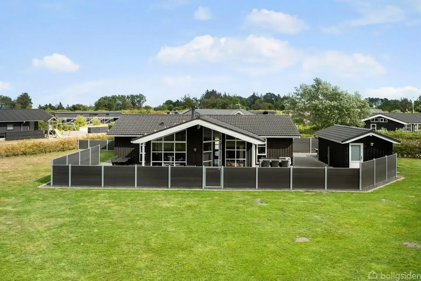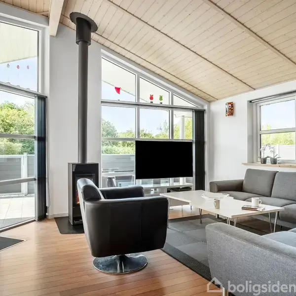 Åbent hus med tilmeldingskrav 2/2 - klik på billede - Dette skønne sommerhus fra 2007 byder på en perfekt planløsning med plads til den helt store familie eller måske to familier. Her er tænkt på både hygge, komfort og funktionalitet. Man bydes velkommen i en rummelig entré med god skabsplads - perfekt til overtøj, sko og feriens bagage. Husets hjerte er det store, lyse alrum med loft til kip, køkken, spiseplads og stue i ét. De store vinduespartier lader lyset strømme ind og skaber en fantastisk rumfornemmelse, mens familien kan samles omkring brændeovnen på de kølige dage. Varmepumpen sørger for komfort året rundt, og fra alrummet er der opgang til en stor hems med soveplads til 6-8 personer - perfekt til børn og børnebørn. Sommerhuset rummer to separate soveafdelinger, hver med to rummelige soveværelser og eget badeværelse. I den ene afdeling forkæles I med både spa og sauna - ideelt til afslapning efter en dag ved stranden. Udenfor finder I en stor flisebelagt terrasse, delvist overdækket, så I kan nyde solen fra morgen til aften eller søge skygge på de varme dage. Der er masser af plads til flere hyggelige siddeområder, mens den store græsplæne indbyder til leg og boldspil. Et stort udhus på 20 m² giver plads til opbevaring eller mulighed for at indrette et aktivitetsrum, og den rummelige flisebelagte indkørsel fuldender helheden. Haslevgårde Eng er et attraktivt sommerhusområde ved Øster Hurup, kendt for sin fredelige atmosfære og smukke natur. Området ligger tæt Kattegat, hvilket gør det ideelt til afslapning, vandreture og strandliv. Her finder man rolige stier, grønne områder og en hyggelig stemning – perfekt til familier og feriegæster, der ønsker ro og nærhed til vandet, men stadig med kort afstand til Øster Hurup faciliteter og hvide sandstrande.