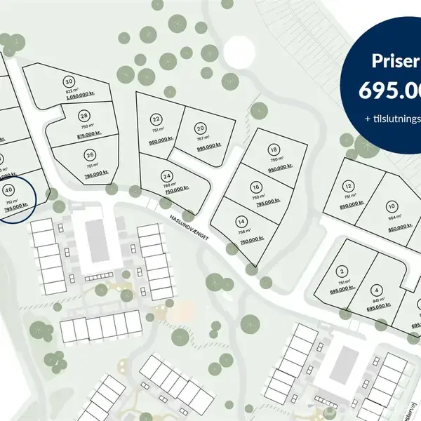 EDC Trio udbyder nu en attraktiv udstykning i det idylliske Haslund – et område, hvor natur, fællesskab og arkitektonisk frihed går hånd i hånd. Udstykningen omfatter i alt 20 byggegrunde med størrelser fra 750 m² til 969 m², hvilket giver rig mulighed for at realisere drømmen om et nyt hjem i grønne omgivelser. Området er nøje planlagt med fokus på rummelighed og grønne fællesarealer, der skaber et åbent og indbydende miljø. Her bliver der plads til både privatliv og naboskab, hvor naturen integreres naturligt i det daglige liv. Haslund er en hyggelig og velfungerende by med et stærkt lokalt fællesskab og et trygt nærmiljø – perfekt for både børnefamilier og seniorer. Byen ligger blot 6 kilometer fra Randers C, hvilket sikrer nem adgang til byens mange faciliteter, butikker og kulturliv, samtidig med at du kan nyde roen og nærheden til naturen. Drømmer du om at bygge nyt i smukke, trygge rammer – tæt på både by og natur? Så er denne udstykning i Haslund det oplagte valg. Se mere på www.byggegrund-haslund.dk