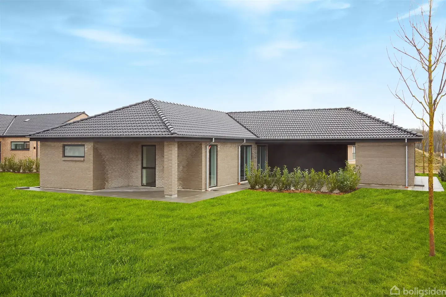 Drømmer I om at bygge nyt i trygge og naturskønne omgivelser? I samarbejde med Hybel udbyder EDC Trio nu et gennemtænkt og moderne projekthus i attraktive Haslund - kun ca. 7 min kørsel fra Randers C og 3 min fra motorvejsnettet. Her får I muligheden for at erhverve byggegrund og opføre et nøglefærdigt hus i en samlet løsning til en yderst attraktiv pris fra kr. 3.255.000,-*. Boligen er tegnet med fokus på funktionalitet og hverdagsliv. Planløsningen udnytter kvadratmeterne optimalt med korte gangforløb, gode opbevaringsmuligheder og en naturlig sammenhæng mellem rummene. Huset kan tilpasses jeres behov - uanset om I er børnefamilie, par eller seniorer. Hjemmets naturlige samlingspunkt er det lyse køkken/alrum med skrålofter og ovenlysvinduer, der skaber en fantastisk rumfornemmelse og et skønt lysindfald. Det elegante beige køkken kombinerer æstetik og slidstyrke med eksklusive detaljer og moderne materialevalg. Udvendigt bydes I velkommen via et overdækket indgangsparti, som både er praktisk i det danske vejr og arkitektonisk integreret i boligens udtryk. Udstykningen i Haslund rummer 20 velplacerede grunde, og er planlagt med grønne fællesarealer og god afstand mellem husene. Her får I et trygt nærmiljø med stærkt fællesskab, kort afstand til skole og daginstitution samt nem adgang til Randers' byliv og faciliteter. Grundene er færdigudstykket, og man kan derfor gå i jorden med det samme! En oplagt mulighed for jer, der ønsker et nyt, energieffektivt hjem i rolige omgivelser - uden at gå på kompromis med kvalitet eller beliggenhed. *Den angivne pris er et estimat og kan variere afhængigt af f.eks. valg af grund, tilvalg, materialer og individuelle tilpasninger. Kontakt EDC Trio for nærmere information om projektets samlede økonomi.