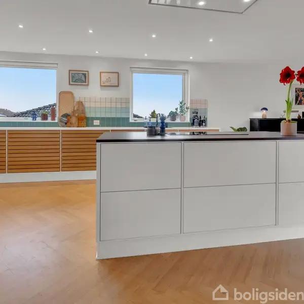 Åbent hus med tilmeldingskrav 14/2 - klik på billede - På Hasselvej 10 finder du en indbydende og velholdt villa på 140 m², hvor planløsningen er gennemtænkt og hverdagen fungerer. Villaen ligger på en 700 m² stor grund og suppleres af en 28 m² skur/værksted. Lys og samvær i hjemmets hjerte Fra entréen ledes du direkte ind i villaens åbne køkken-alrum og stue, som udgør hjemmets naturlige samlingspunkt. Her er et skønt lysindfald fra de store vinduespartier, og det elegante og massive bambusgulv giver rummet et varmt og roligt udtryk. Køkkenet er fra Svane og fremstår både stilrent og funktionelt med god bord- og skabsplads samt dobbelt ovn – perfekt til både hverdagsmad og gæster. Stuen har god plads til både spiseafdeling og sofaarrangement, og herfra er der direkte adgang til terrassen, hvor en del er overdækket og forlænger udesæsonen markant. Praktisk hverdag med ekstra indgang Fra køkkenet er der adgang til villaens bryggers, som også fungerer som boligens anden indgang. Det giver en praktisk og funktionel løsning i hverdagen, hvor overtøj, sko og vask kan holdes adskilt fra opholdsrummene. Rolig værelsesafdeling med god plads I den modsatte ende af villaen finder du værelsesafdelingen, som er samlet omkring en fordelingsgang. Her er tre gode værelser samt et rummeligt soveværelse med god skabsplads. Badeværelset er fint og funktionelt med både badekar og bruseniche, og som i resten af villaens klinkebelagte arealer er der gulvvarme, der sikrer ekstra komfort året rundt. Velholdt og opdateret Villaen fremstår velpasset og løbende opdateret. Vinduerne er skiftet i 2017/2019, og helhedsindtrykket er indflytningsklart og nemt at gå til for den næste familie. Have, udeliv og beliggenhed Haven er privat og overskuelig med god plads til både leg og afslapning, og terrassen indbyder til hyggelige stunder i læ og sol. Beliggenheden på Hasselvej er rolig og familievenlig, med kort afstand til hverdagens faciliteter i Støvring. En villa med en rigtig god planløsning, skønt lysindfald og en indretning, der passer perfekt til familielivet – klar til nye ejere.