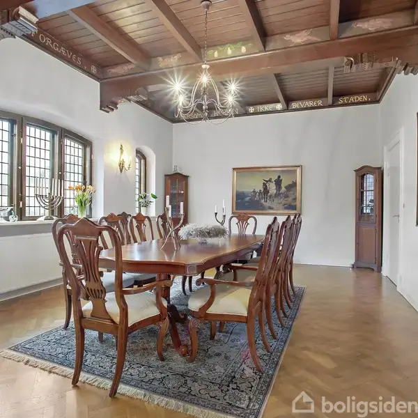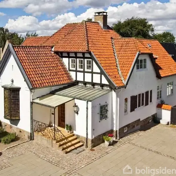 Indre Hasseris - Markant og virkelig elegant villa i engelsk stil!Grosserer Reikehr's egen villa opført i 1914 Virkelig skøn bolig i 3 plan - og hvor man har bevaret husets oprindelige stil · Smukke detaljer overalt i huset - bl.a. stor hall med pejs, og repos med karnap og vinduesparti med blyindfattede ruder Rustikke mørke trælofter med synlige bjælker og udskæringer i spisestuen Elegante stavparket og sildebensparketgulve i de fleste rum Skøn opholdsstue med udgang til stor vestvendt terrasse