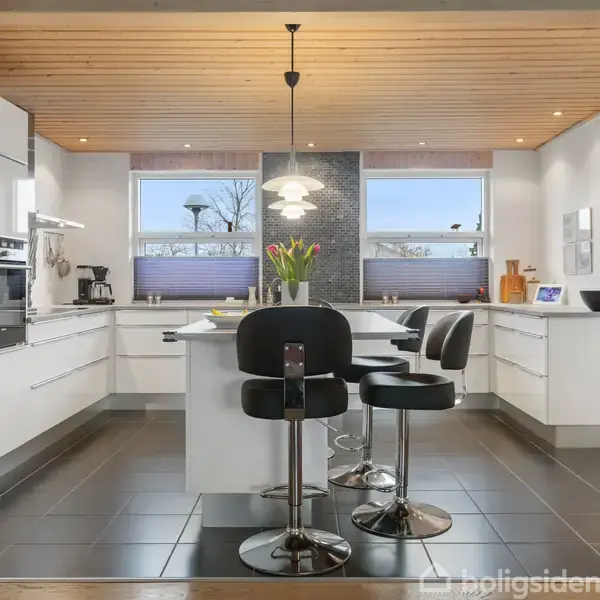 På Hattemagervej 31 finder I denne særdeles nydelige og velholdte villa, der med sine moccafarvede facadesten og flotte røde tegltag fremstår klassisk, indbydende og tidløs. Her er tale om en gennemført familievilla med masser af plads, gennemtænkt planløsning og en atmosfære der emmer af kvalitet og hjemlighed – både inde og ude.Allerede ved ankomsten fornemmer man, at dette er et hjem, der er passet godt på. Boligen rummer hele 240 m² fordelt på to plan og er ideel til den pladskrævende famili