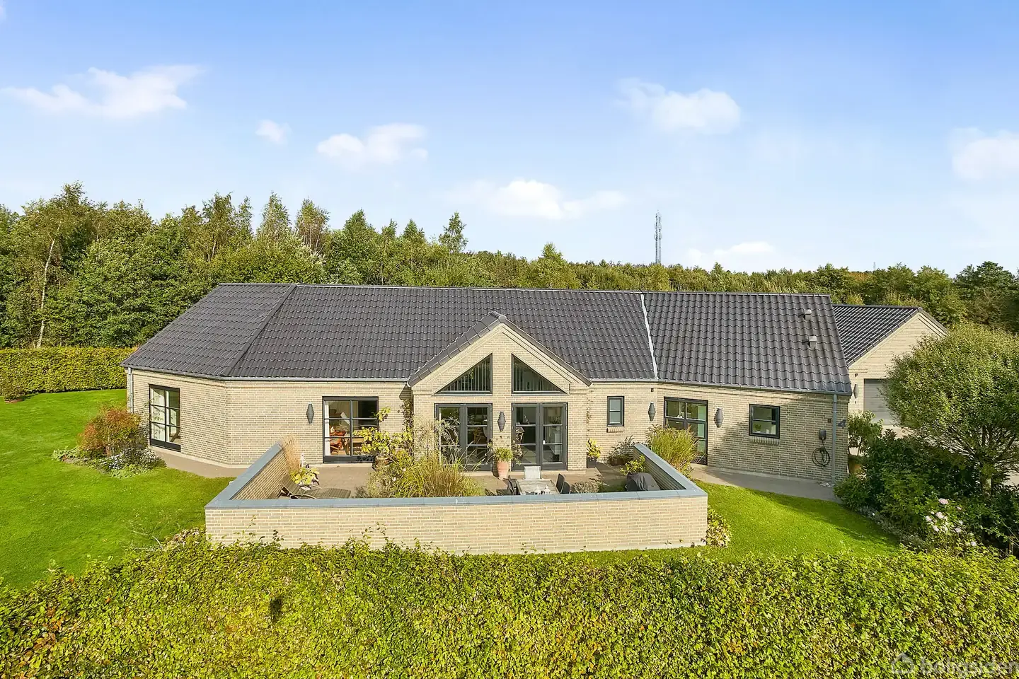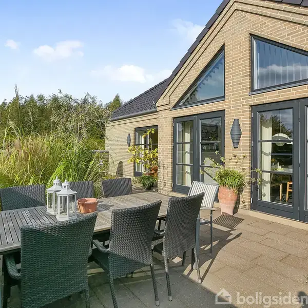 Denne indbydende villa på 213 m² fra 2010 ligger på en stor grund på 1.488 m² i et roligt og børnevenligt kvarter, hvor hverdagen får de bedste rammer. Boligen er i ét plan og fremstår velholdt med et moderne udtryk, store vinduespartier og en sydvendt, indhegnet terrasse, som både skærmer mod indblik og skaber et privat, solrigt uderum.Indendørs byder boligen på en gennemtænkt planløsning, hvor et imponerende køkken-alrum danner hjemmets naturlige samlingspunkt. Her er der loft til kip og treka