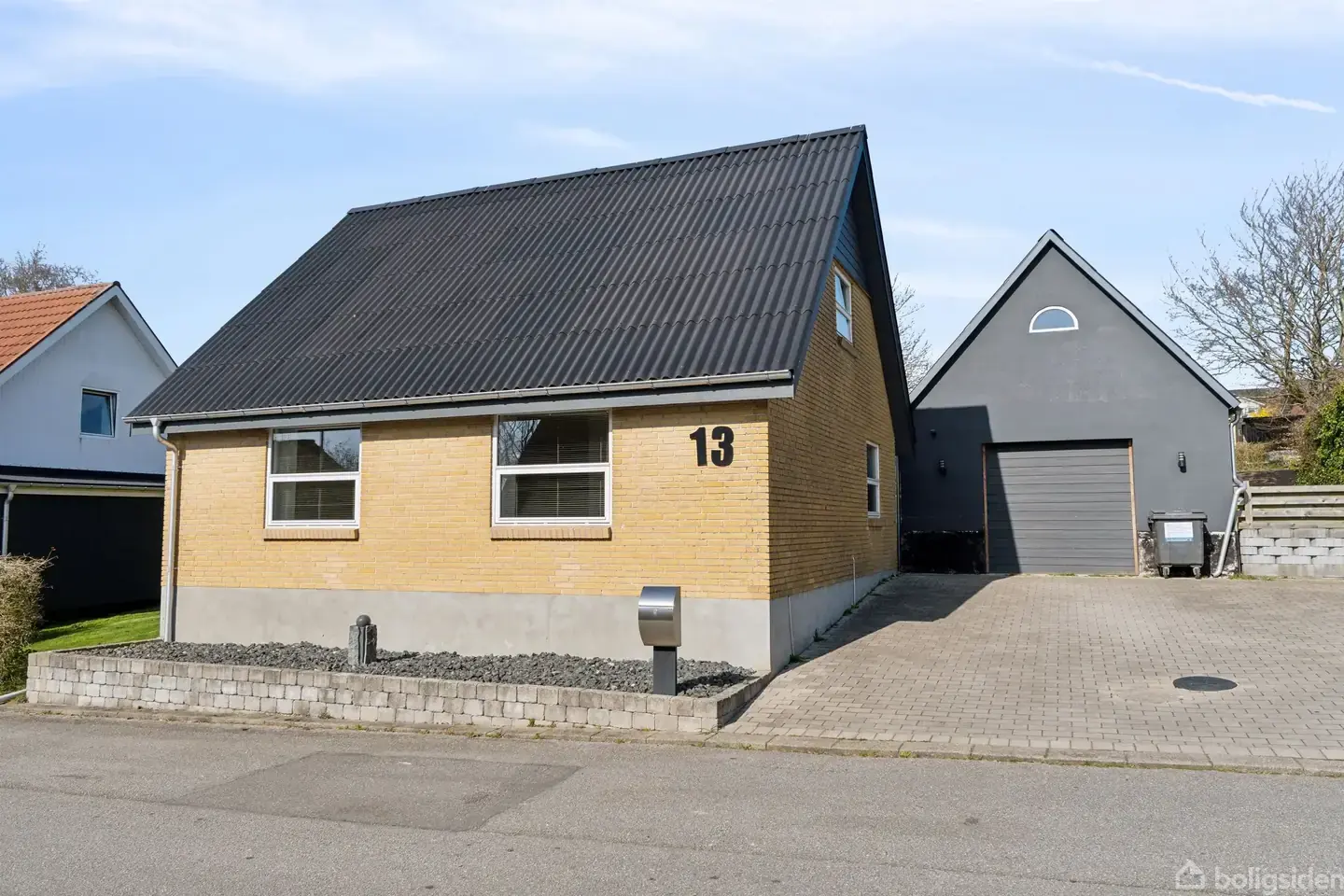 Åbent hus med tilmeldingskrav 1/2 - klik på billede - Villaen fremstår i pæn og velholdt stand og har gennemgået løbende moderniseringer – herunder nyt tag i 2024 samt nyere flisebelægning. Indenfor bydes man velkommen i en entré med adgang til husets badeværelse med bruseniche og lille gang. Fra gangen er der adgang til det velindrettede køkken, som ligger i forbindelse med stuen. Stuen har et skønt lysindfald og god plads til både spisebord og sofaarrangement. Fra stuen er der direkte udgang til en dejlig terrasse mod vest, hvor eftermiddagssolen kan nydes. Fra gangen er der trappe til 1. sal, som rummer et stort repos (mulighed for at lave et værelse) og et rummeligt værelse. Udendørs finder man gode terrasseområder, herunder et stort overdækket terrasseareal, et fantastisk udhus, opdelt i 2 rum, hvoraf det ene rum er med vask og god plads til opbevaring eller hobbybrug. Desuden et lille skur til opbevaring. Grunden er velanlagt med en dejlig nem have. Indkørslen er udvidet og anlagt med nye fliser i 2024, så der er god plads til parkering. Kongerslev er en by med et aktivt lokalsamfund, gode skoler, daginstitutioner, idrætsfaciliteter og mange rekreative muligheder. Området ligger kun ca. 30 minutters kørsel fra Aalborg og tæt på den unikke natur i Lille Vildmose, hvor både elge, kronvildt og rigt fugleliv kan opleves.