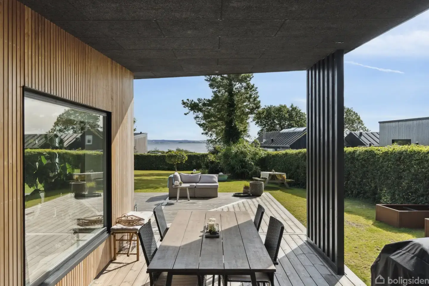 Eksklusive materialevalg, glimrende lysindfald og en velovervejet planløsning kendetegner denne arkitektonisk veludførte ejendom fra 2023, som endda drager fordel af en fremragende beliggenhed med udsigt over Kalø Vig. Villaen, som er tegnet af arkitekterne Menzer & Kristensen, er velovervejet - både med tanke på udsigten, som man får glæde af fra næsten alle rum i boligen, men også i forhold til funktionalitet og kvalitet, der gennemsyrer hjemmet.Stilrent og dynamisk designEjendommen er dynamis