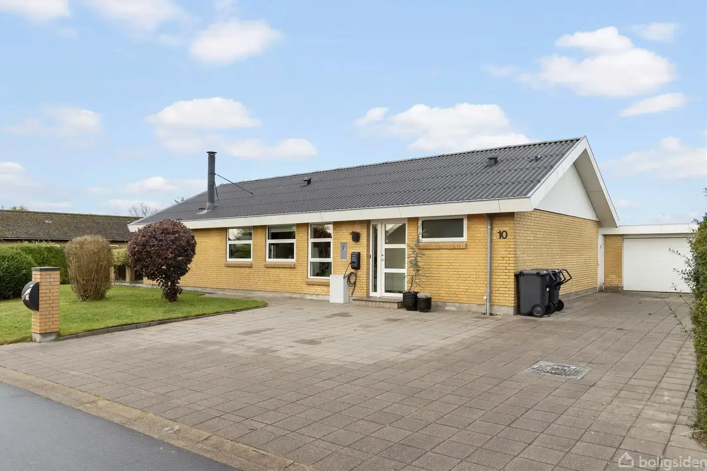 Åbent hus med tilmeldingskrav 12/2 - klik på billede - Super flot moderniseret et-plans villa i det dejlige, lukkede og børnevenlige fuglekvarter i Brønderslev sydby. Herfra er der let adgang til Søndergade skole og Brønderslev midtby med de mange handle muligheder. Denne 70'er villa er særdeles veludnyttet og flot istandsat - senest med nye vinduer fra 2020. Villaen fremstår indflytningsklar med følgende indretning: Flot entre med klinkegulv, fordelingsgang med adgang til pænt badeværelse fra 2013 med skyde skabe til afdækning af vaskemaskine og tørretumbler og me dmulighed for opbevaringsplads, dejligt soveværelse med stor skabsvæg, to gode værelser, flot designa køkken fra 2013 i åben forbindelse med lys opholdsstue med brændeovn og god plads til spisebord - fra alrummet er der ligeledes udgang til haven med dejlig stor terrasse. Den 1.079 m² store grund er pænt anlagt med forskellige træer og buske, samt en dejlig stor terrasse mod syd og vest. Tilhørende er muret garage med el-port, samt et skur opført i 2014 i vedligeholdelsesfrie materialer. En villa, som i forhold til stand og beliggenhed, tilbyder de optimale forudsætninger, for at slappe af og nyde hverdagen i ro og mag. Tekniske oplysninger: Tag: Eternittag fra 2014 Ydervægge: Gule mursten Vinduer: Træ/ALU 3-lags fra 2020 Varmeanlæg: Fjernvarme og brændeovn Faktisk varmeforbrug 2024: 10.864,83 kr. Oplysninger om Brønderslev Kommune: se - www.bronderslev.dk