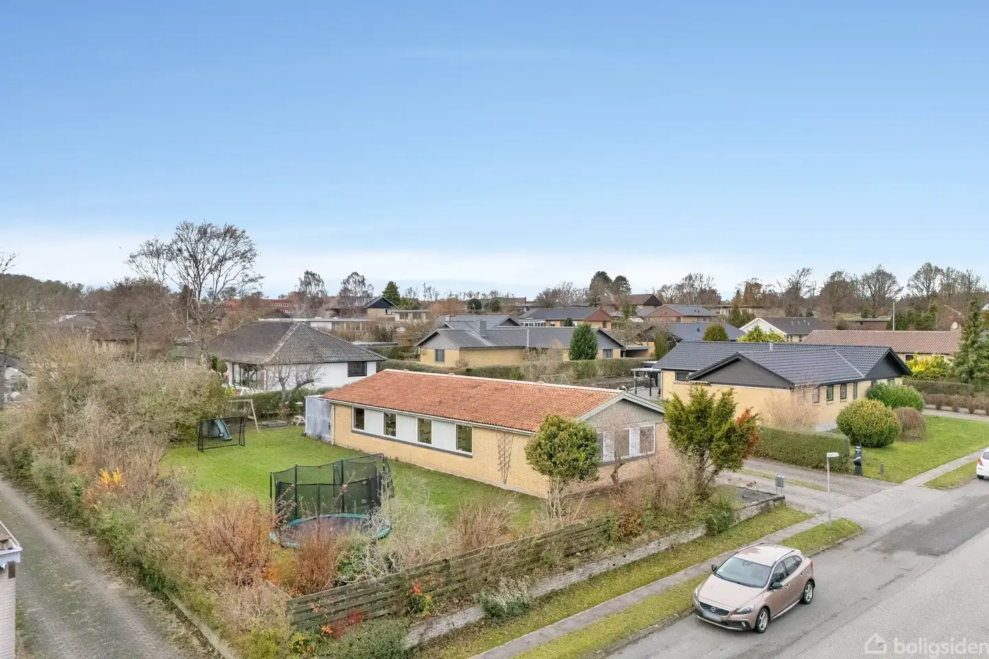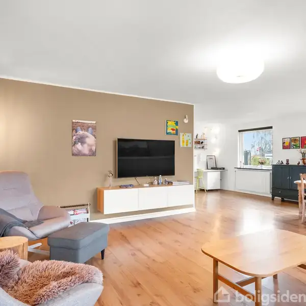 Her får I en bolig, hvor både indretning og beliggenhed gør hverdagen nem. Huset ligger fredeligt i starten af et lukket vænge, hvor man hurtigt mærker den rolige stemning og et godt naboskab. Det er et område, hvor børn kan færdes trygt, og hvor de daglige gøremål ligger tæt på.Boligen er opført i ét plan og har en planløsning, der fungerer rigtig godt for både børnefamilien, parret eller jer, der ønsker lidt mere plads. Entréen byder velkommen med god plads til overtøj, og herfra fordeler rumm