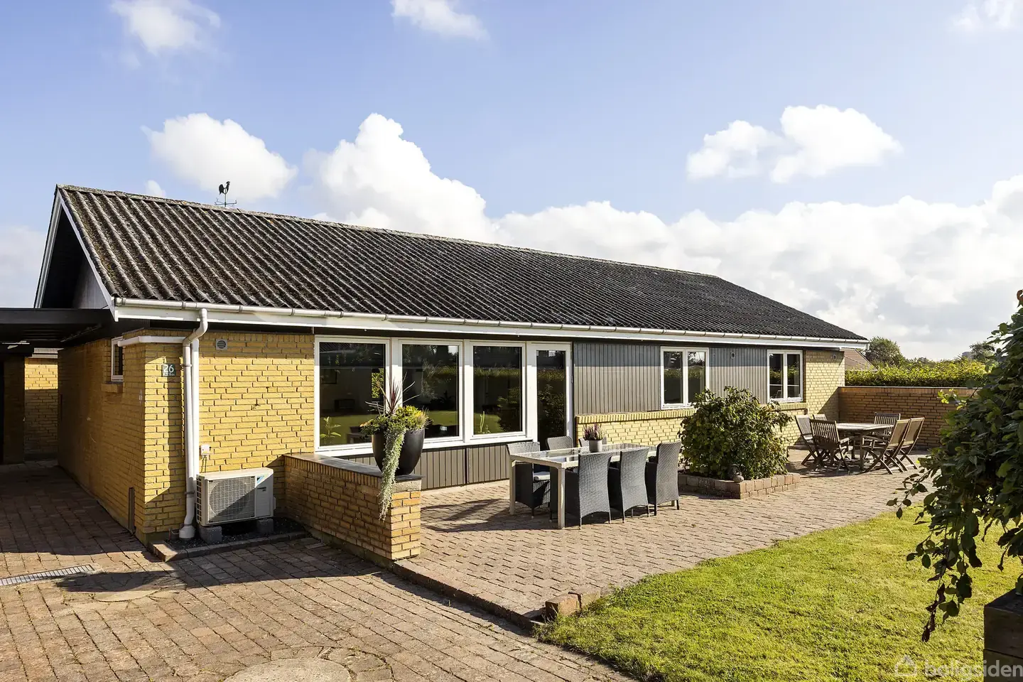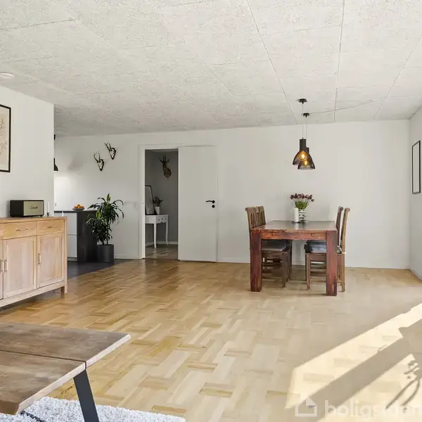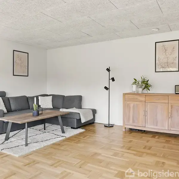 For enden af et lukket villavej udbydes denne indbydende indflytningsklare villa. Her er en veldisponeret planløsning, en hyggelig have med terrasse samt en god beliggenhed, der alle henvender sig til børnefamilien eller parret i alle livets faser. Villaens 124 kvadratmeter fordeler sig på ét plan med en god fordeling mellem samværet og privatlivet. I villaens ene side ses værelsesafdelingen med tre regulære værelser, et yderst velholdt badeværelse med badekar og et gæstetoilet, hvortil den and