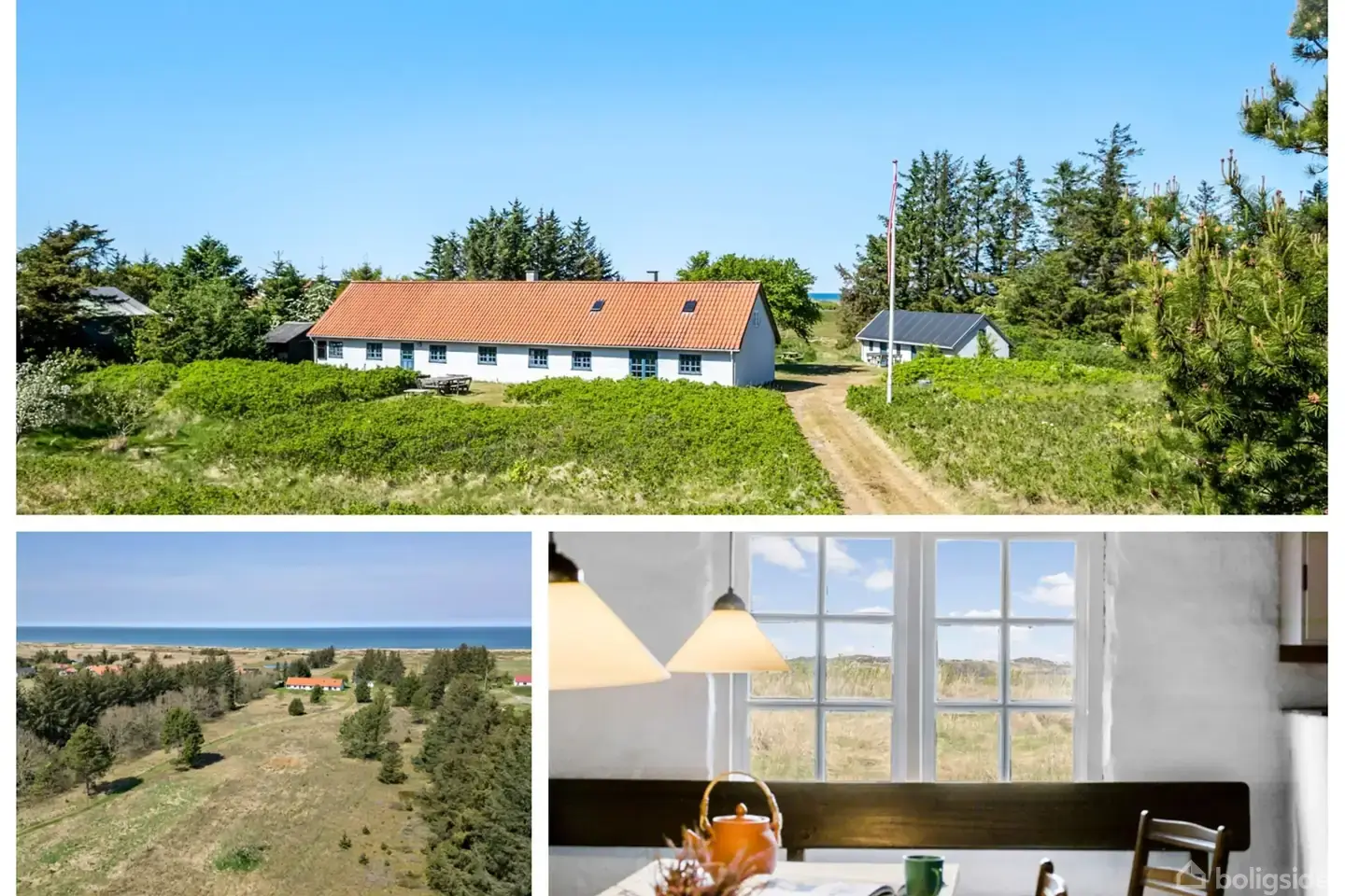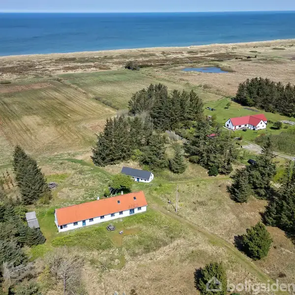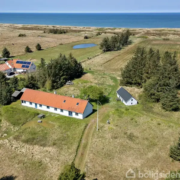 Åbent hus med tilmeldingskrav 3/2 - klik på billede - Sørines Hus ved Thorupstrand – En Sjælden Perle ved Havet Drømmer du om en unik fritidsejendom med sjæl og historie? Med en enestående beliggenhed direkte ud til havet, omgivet af naturskønhed og frihed, byder Sørines Hus på en eksklusiv mulighed for at erhverve en af områdets mest betagende ejendomme. Med sine ca. 4 ha egen jord, hvor du kan ride direkte ned til stranden, er dette et sandt paradis for naturelskere, frilivsentusiaster og dem, der vægter privatliv højt. Ejendommen stammer fra ca. 1870 og er opført i karakteristiske limsten. Den oprindelige sjæl er bevaret gennem en omfattende, men nænsom renovering i 1995, hvor bl.a. nyt tegltag og elinstallationer blev etableret. Huset emmer af rustik elegance med hvidmalede skulpturelle vægge og smukke klinkegulve. Hovedhuset på 163 m2 er indrettet med blik for både funktionalitet og hygge. Her finder du: · En rummelig baggang og bryggers · Et charmerende køkken med åben forbindelse til spisestue · En hyggelig opholdsstue med pejs · Fem indbydende soveværelser · To toiletter og et baderum med gulvvarme · Et stort laderum med pejs, bordtennisbord og hems Udhuset på 43 m2 er renoveret i samme rustikke stil og indeholder et værksted samt et disponibelt rum med hems, der p.t. bruges til ekstra sovepladser. Hertil kommer et nyere opført cykel- og brændeskur. Grunden er smukt afgrænset mod syd af Havvejen, mens klitterne og havet danner den naturskønne ramme mod nord. Her finder du en ugeneret badestrand, hvor du kan nyde det brusende Vesterhav stort set for dig selv. Muligheden for at ride på egen hele vejen ned til stranden, gør ejendommen til noget ganske særligt. Områdets store plantager indbyder til lange gå- og cykelture, og ved ophalerpladsen i Thorupstrand kan du opleve det autentiske fiskermiljø med både, der stadig trækkes op på stranden. Ejendommen opvarmes primært med elpaneler og der er etableret nyt kloaksystem med bundfældningstank i 2015. Vandforsyningen sker via lokalt vandværk. Huset er indrettet med mange mindre rum, hvilket giver en intim og hyggelig atmosfære, der egner sig såvel til mindre familier som til større forsamlinger. Sørines Hus er mere end en fritidsejendom – det er en livsstil. Her får du en sjælden kombination af historie, autentisk charme og en enestående beliggenhed ved havet. Lejeaftale.: Ingen