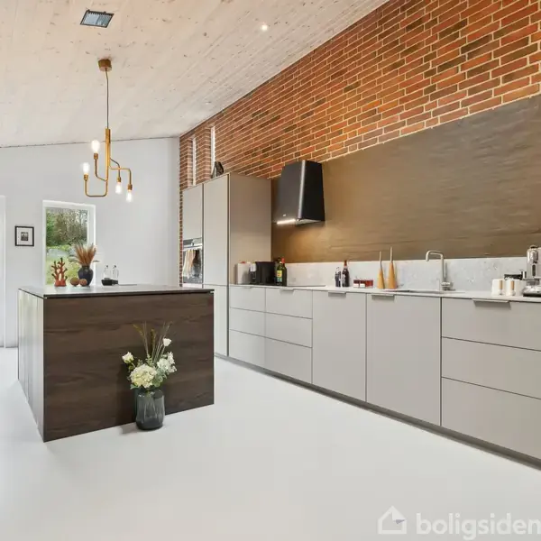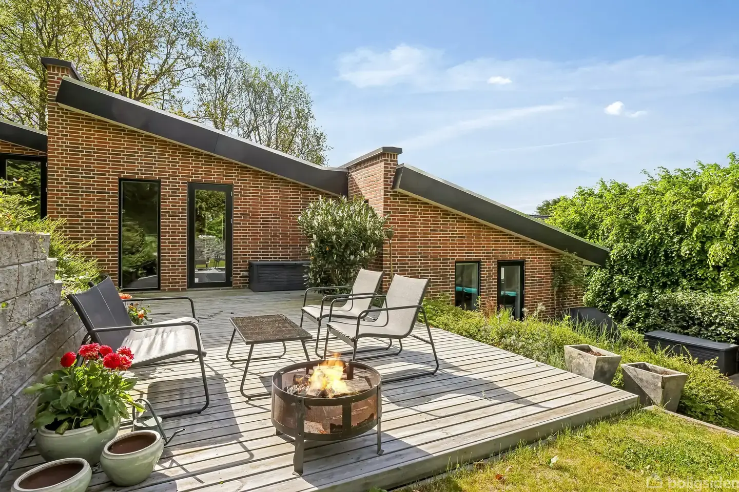 Drømmer I om at finde en bolig med X-faktor? Så lad os vise jer denne arkitekttegnede villa fra 1977, der ligger på en kanon placering i Hvinningdal. Her omkranses man af en skøn natur, hvor skovens dyr kommer på besøg helt inde i haven, og grunden støder op til et grønt bevokset område med flotte egetræer og legeplads til børnene. Villaen ligger højt, og er bygget ind i terrænet, hvilket giver en særlig kant til huset. Boligen er tilpasset den skrånende grund og rundt om huset er der flere skø