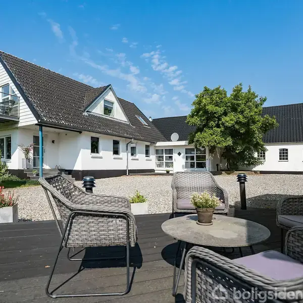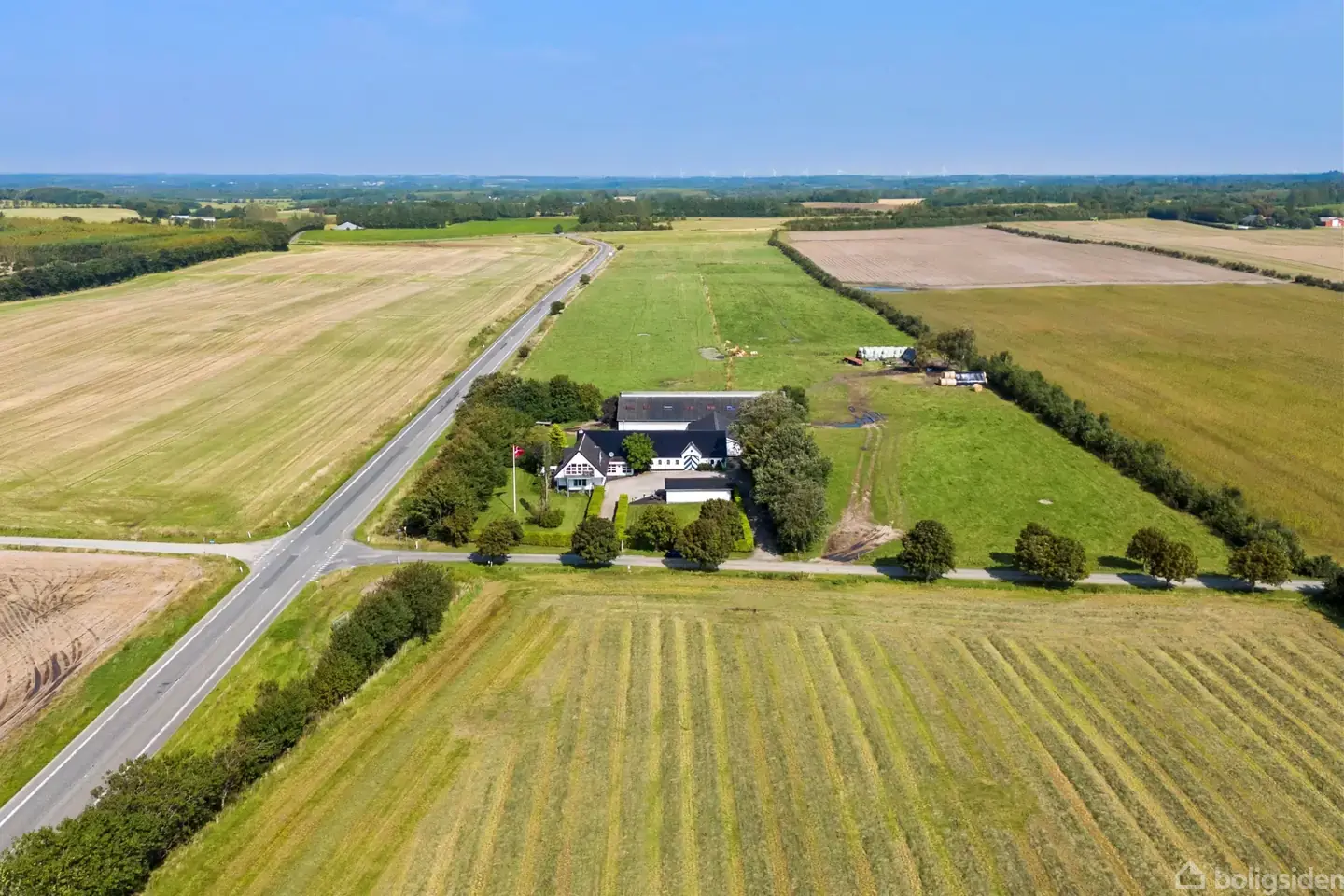 Fritidslandbruget Bakkely er beliggende sydøst for Give, med et jordareal på 31,6 Ha, og indrettet til avl af kødkvæg i en fin indrettet dybstrøelsesstald. Ejendommen er beliggende mellem Grønbjerg og Give med god vejadgang. Udbygningerne benyttes i dag til kødkvæg, men kan sagtens ændres til andre formål. Stuehuset er løbende moderniseret og indrettet med fin lys entre, køkken er Pandora fra 2021 med åbent ind til spiseplads, hvor der er udgang til terrasse. Herudover er der stue og et værelse, alt sammen med gulvvarme tilsluttet centralvarmeanlægget. Der er tilbygget kontor der indgår i boligarealet og bad/toilet indrettet i laden. I kontor og bad er der el gulvvarme. 1. salen er med rustiklofter og synlige bjælker, indrettet med badeværelse, 2 værelser og opholdsstue med altan mod syd. Bygning 2 er opført i 1932 med hvidpudsede mure og ståltag. Udover bad er den indrettet med en dejlig gildesal med hvælving loft, epoxy gulv og bar, samt 3 værelser. Ombygningen af den oprindelige ladebygning er ikke registreret ved kommunen. Resten af bygningen bruges som lade/maskinhus, hvor der er silo til kraftfoder. Bygning 3 bygget i 1975 med hvidpudsede mure og eternittag, er tidligere grisestald, men er lavet om til opbinding af kreaturer. Kødkvægsstald er bygget i 2007 på 695 m² i stålplader og eternittag, og indrettet til dybstrøelse med fanggitre, her er plads til 50 stk. kødkvæg. Garagebygning fra 1991 med hvidpudsede vægge og eternittag, med fin plads til 3 biler. Der forefindes en godkendt lokalplan på 7,2 ha af ejendommens areal, hvor der må opstilles solceller. Såfremt disse etableres, deles det årlige vederlag efter aftale mellem køber og sælger, alternativ hvis købsoptionen vælges, deles denne efter aftale. I den udbudte pris medfølger der ingen besætning, beholdninger eller maskiner. Jordtilliggende på begge sider af ejendommen, hvor godt 18 ha agerjord ligger, med tilhørende markvanding. Heraf er 7,2 ha omfattet af en aftale omkring solceller. Derudover er der 6,7 ha agerjord på den anden side af vejen, og 4,6 ha permanentgræs med fiskeret i Omme å. I alt 29,6 ha der søges tilskud på. En fin ejendom, som fremtræder velholdt og opryddet, med stort jordtilliggende som åbner mulighed for selv at drive det eller bortforpagte.