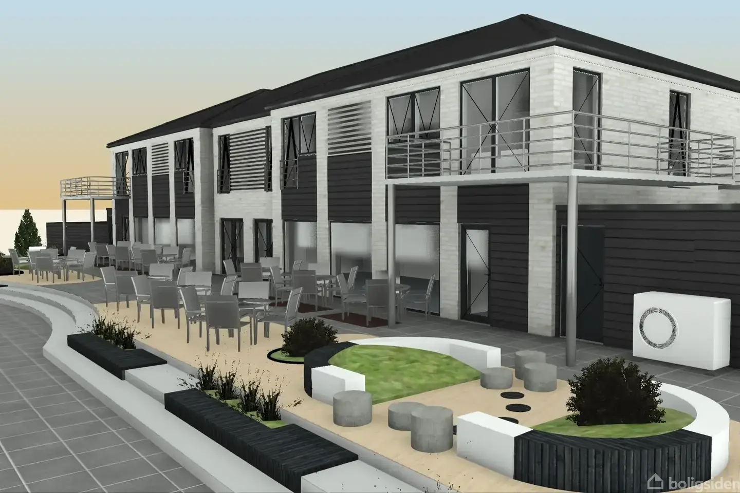 Der, hvor byens liv møder havets rolige rytme, opføres et ekstravagant boligprojekt, der kombinerer moderne luksus med gennemtænkte detaljer. 7 eksklusive 1 plans rækkehuse og 6 stilfulde lejligheder er på vej, bygget i kvalitetsmaterialer og med mulighed for personlige tilvalg, så dit nye hjem bliver skræddersyet til dine drømme. Du får det bedste af to verdener - lige overfor Solrød Centeret og et stenkast fra stranden. Start dagen med en morgendukkert i havet, shop i byens mange butikker og slut dagen af med roen på din private terrasse/altan. Her er der tænkt på alt – fra den private parkeringsplads, hvor bilen kan stå klar til næste tur, til det praktiske redskabsrum, der kan rumme alt fra cykler og haveredskaber til hverdagens små fornødenheder. Eurodan Huse står bag boligerne, der er skabt med fokus på kvalitet og moderne løsninger. Alt inventar er fra Svanekøkken, hvilket tilfører et eksklusivt præg, mens trægulve fra Timbermann understreger hjemmets høje standard. Med varmepumpe, ventilationssystem og gulvvarme i alle boligerne bliver hverdagen både bæredygtig og behagelig, og de gennemførte detaljer fuldender fornemmelsen af luksus. Stuelejlighederne på 110 kvm byder på private, solrige haver, der inviterer til afslapning og udeliv året rundt. De fire 1.-sals lejligheder på 91 og 100 kvm imponerer med to altaner og franske altaner, der åbner op mod himlen, og adgang via elevator gør hverdagen ekstra bekvem. Lyset strømmer ind og fylder rummene, mens de store vinduespartier skaber en flydende overgang mellem inde og ude. Hver lejlighed er gennemført med to stilfulde badeværelser – det ene i direkte forlængelse af soveværelset for ekstra komfort og privatliv. Opholdsrummene er nøje designet som ét samlet miljø med køkken, alrum og stue, hvor kvalitet og funktionalitet forenes og skaber rammerne for et liv i luksus og lethed. Rækkehusene på 93-100 kvm er skabt med fokus på lys, kvalitet og komfort. Store vinduespartier lader dagslyset fylde rummene og skaber en glidende overgang til den sydvendte have, der indbyder til udeliv og afslapning. Boligen byder på to elegante badeværelser, hvoraf det ene har direkte adgang fra soveværelset for ekstra bekvemmelighed. Det åbne køkken/alrum og opholdsstue forener æstetik og funktionalitet i et stilrent miljø, der fuldender rammerne om et moderne liv. Her er alt helt nyt og nøje gennemtænkt – et hjem, der forener nydelse, funktionalitet, byliv og strandens frihed i perfekt balance.
