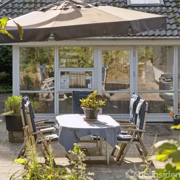 En udestue, hvor man gennem de store vinduespartier, har en udsigt naturens forandring