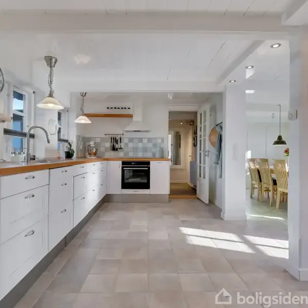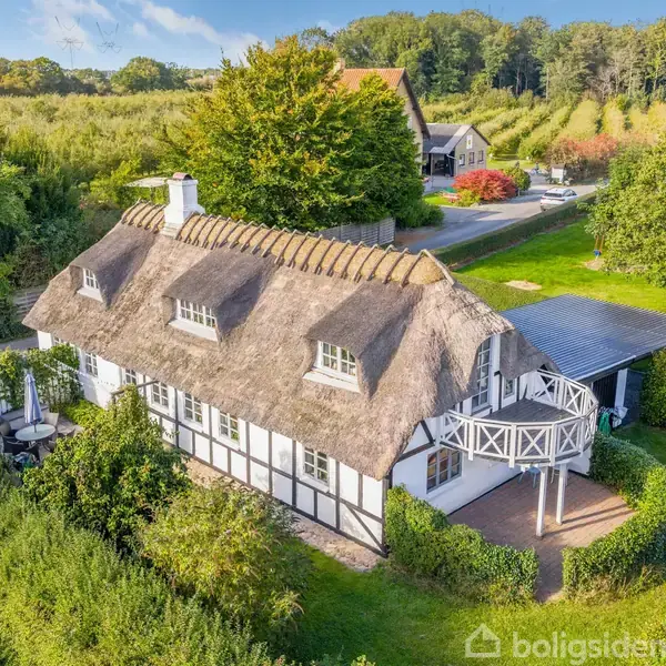 I Højby, Odense S, finder du denne helt særlige perle, der nu søger sine nye ejere. Huset ligger for enden af et lukket vænge med skoven helt tæt på og kort afstand til de naturskønne områder Hollufgård og Glisholm. Højby byder på gode indkøbsmuligheder, skole, børneinstitutioner og et aktivt foreningsliv. Her får du den sjældne kombination af fred og landlig idyl – samtidig med, at du er tæt på byens mange muligheder. Allerede ved ankomsten mødes du af den klassiske bindingsværksfacade i sort og hvid med stråtækt tag. Bilen parkerer du nemt i den dobbelte carport, blot få skridt fra hoveddøren. Indenfor venter et lyst og indbydende hjem fuld af sjæl og ro. Entréen er holdt i hvidt på både vægge og lofter – et gennemgående træk, der giver et luftigt og harmonisk udtryk. Herfra fører trappen til den istandsatte førstesal med to store værelser. Det ene værelse har vestvendt altan med den smukkeste udsigt over grønne arealer – oplagt som forældreafdeling, kontor eller teenageafdeling. Fra entréen er der desuden adgang til et badeværelse med gulvvarme, lyse elementer og mikrocement på gulvet, der både er stilfuldt og behageligt at træde på. Her finder du også et rummeligt soveværelse, som let kan opdeles i to ved at inddrage det tilstødende depotrum. Husets naturlige samlingspunkt er det store køkken-alrum i åben forbindelse med stuen. En brændeovn spreder varme og hygge i de kolde måneder, mens gulvvarme, opdelt i to kredse, under de smukke gulve giver ekstra komfort året rundt. Køkkenet fra IKEA er indrettet med hvide fronter og bordplade i varmt træ. Da gulvet ligger under køkkenelementerne, kan du udskifte køkkenet uden at skulle lægge nyt gulv. Bag køkkenet ligger bryggerset med vaskefaciliteter, rigelig opbevaringsplads og en praktisk ekstra indgang. I spiseområdet er der god plads til et langt spisebord, hvor familie og venner kan samles – eller hvor børnene kan lave lektier, mens aftensmaden tilberedes. Stuen skaber et hyggeligt opholdsrum med plads til sofaarrangement, reoler og bløde møbler. Fra stuen er der direkte udgang til den sydvendte fliseterrasse, der danner et charmerende gårdhavemiljø med plads til havemøbler, grill og krukker. Den lukkede have er en grøn oase med græsplæne, træer og en charmerende pavillon, der forlænger udesæsonen markant. Her kan du endda opleve rådyr helt tæt på huset. Haven rummer også mulighed for at genetablere køkkenhaven og at holde høns. En ejendoms vis sjæl og charme skal opleves! Kontakt os for en fremvisning.
