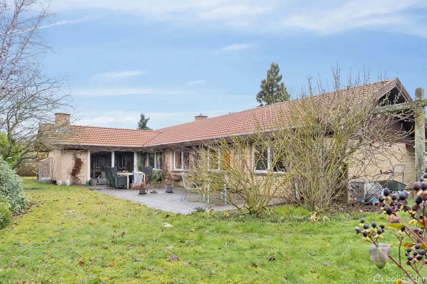 Rummelig etplansvilla tæt på fjord og bymidte Denne etplansvilla i Holbæk blev bygget i 1976 – i et dejligt nabolag tæt på fjorden. Med hele fire værelser og to badeværelser er huset som skabt til børnefamilien, der tillige kan se frem til en stor og stemningsfuld pejsestue. Boligen får følgeskab af en solrig have, hvorfra der ovenikøbet er kig til vandet. Stuen er hjemmets naturlige samlingspunkt, og den kan snildt danne ramme for de større familiesammenkomster. Den murede pejs og det blotted