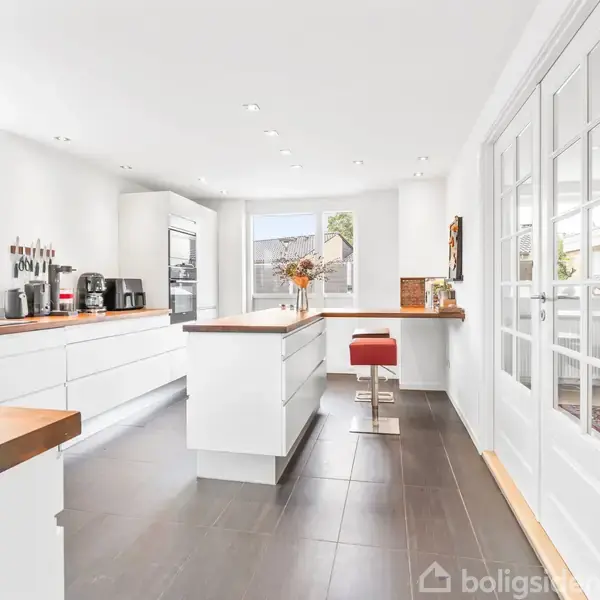 Velkommen til en af Haderslevs mest unikke liebhaverboliger, hvor lys, luft og panoramaudsigt smelter sammen i perfekt harmoni. Fra Sydbank Park og hele vejen forbi det gamle sygehus er Haderslev Dam det gennemgående midtpunkt – et levende kunstværk, der dagligt skifter udtryk alt efter årstid og vejr. Ejendommen ligger ugeneret og privat med skønne terrasser og uderum, der inviterer til afslapning i fredelige rammer. Indretning Øverste etage imponerer med et stort, lyst køkken, en imponerende stue med plads til både afslapning og selskab, master bedroom med walk-in closet, kontor, badeværelse samt gæstetoilet. Fra samtlige rum i denne etage mødes du af det dragende vue over dammen, som fylder boligen med naturligt lys og en helt særlig stemning. Nederste etage rummer fire værelser, hvoraf to i dag fungerer som ekstra stuer på grund af deres størrelse, endnu et badeværelse samt et rummeligt bryggers. Alle sydvendte rum har direkte udgang til de fantastiske terrasser, hvor du kan nyde både morgensol og lange sommeraftener. En bolig med sjæl og format Dette er en ejendom ud over det sædvanlige – en liebhaverbolig, hvor beliggenheden alene gør den til noget ganske særligt. Samtidig er planløsningen ideel for børnefamilien, der ønsker kort afstand til skole, daginstitutioner, indkøb og byens øvrige faciliteter. Kort sagt: Heimdalsvej 36 er ikke blot et hjem – det er en oplevelse.