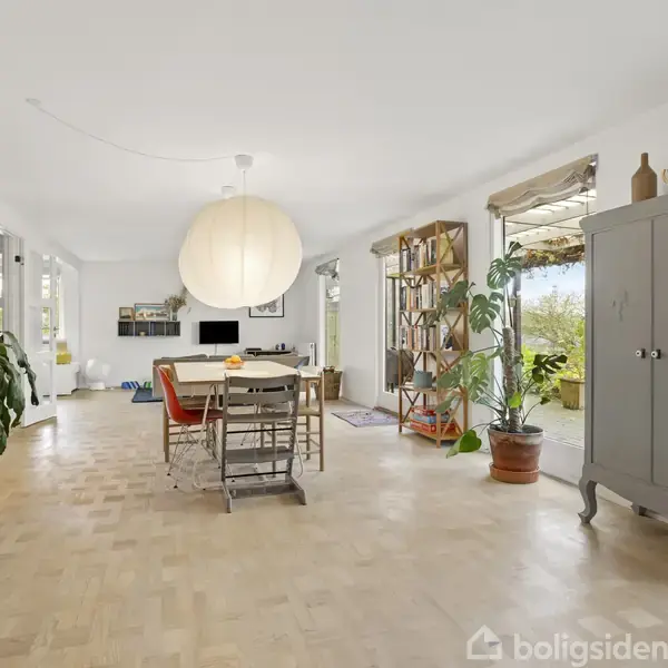 Oplev din nye drømmevilla i dag! Velkommen til denne charmerende villa, der strækker sig over 189 kvadratmeter og byder på en indbydende atmosfære, perfekt til familielivet. Med fire rummelige soveværelser og et lyst opholdsområde, er dette hjem ideelt til at skabe minder og nyde samvær med dem, du holder af. Den åbne planløsning giver en naturlig forbindelse mellem stue og køkken, hvor det varme lys strømmer ind gennem de store vinduer, og skaber en hyggelig stemning. Boligen er indrettet med