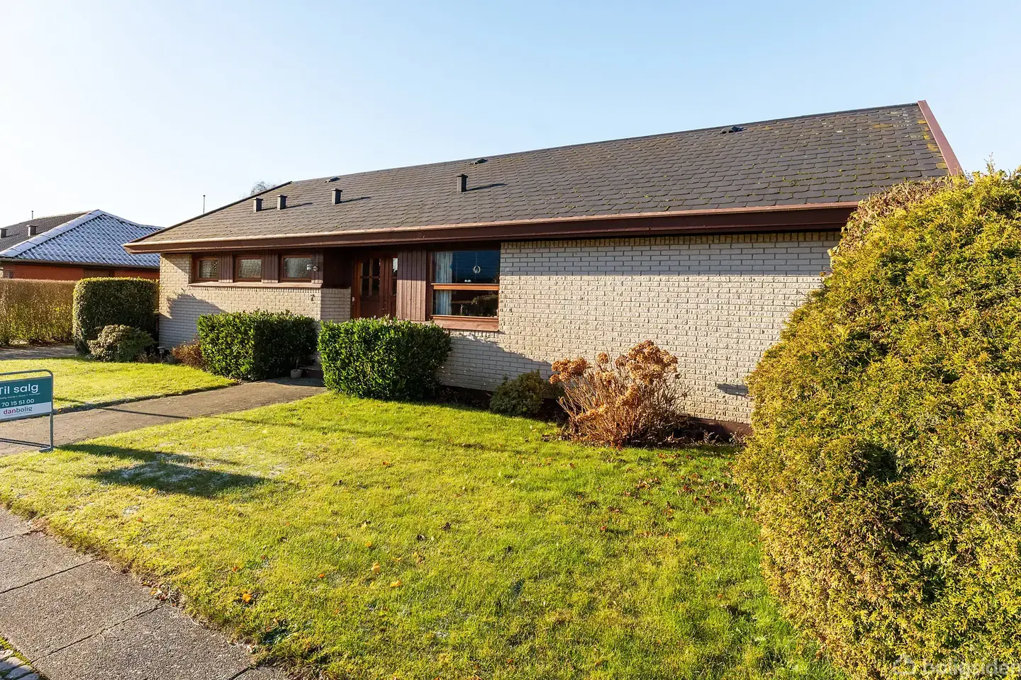 Villa i attraktivt, roligt vænge i Varde med god planløsning, tre værelser, store opholdsrum og skøn, lukket have med nordvestvendt terrasse.Villaen er en klassisk murstensbolig fra starten af 1970’erne med en funktionel indretning. Planløsningen samler de tre værelser i den ene ende af huset og skaber en naturlig værelsesafdeling. Fra entréen fører gangen jer hertil, hvor indbyggede skabe giver god opbevaringsplads. I samme område ligger badeværelse med badekar og tidstypiske fliser i pæn stand
