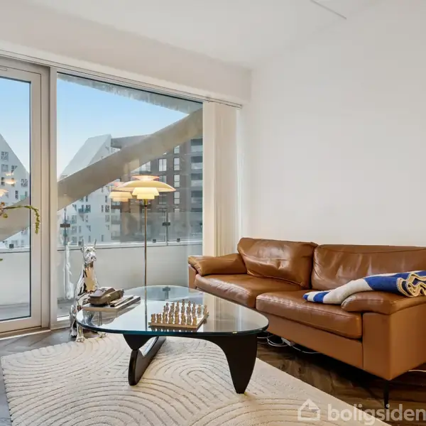 Velkommen til Helga Pedersens Gade 13, 4. 3. – en moderne og indbydende ejerlejlighed med altan og charmerende detaljer.Lejligheden fremstår lys, velholdt og indflytningsklar med et eksklusivt præg, der straks mærkes. De gennemgående, smukke mørke sildebensgulve skaber en elegant rød tråd gennem boligen og giver et varmt, stilfuldt udtryk, som løfter helhedsindtrykket.Boligens samlingspunkt er det åbne køkken-alrum og stue, hvor hverdagen får plads. Køkkenet er stilrent udført med hvide elemente