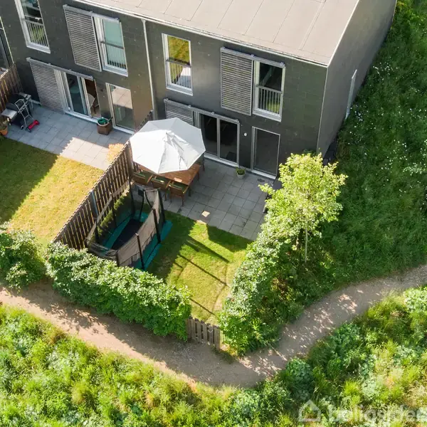 Indflytningsklart enderækkehus fra 2021 med store vinduespartier, masser af plads og skønt naboskabDenne attraktive bolig fremstår i særdeles flot og indflytningsklar stand og byder på hele 126 veldisponerede kvadratmeter fordelt på to plan. Boligen er opført i kvalitetsmaterialer med fokus på komfort, funktionalitet og lave driftsomkostninger – og med ekstra opbevaringsløsninger, der giver huset mange rummelige kubikmeter.I stueplan bydes du velkommen i en rummelig entré med praktiske skydelåge