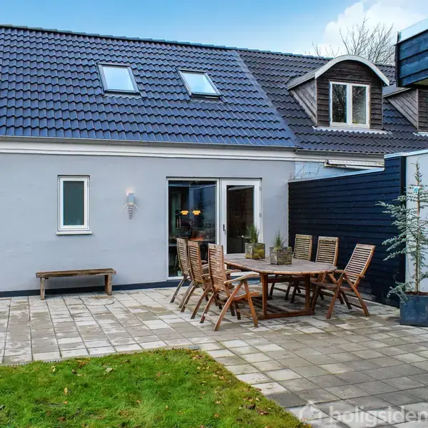 Ejendommen er moderniseret i år 2016 såvel ude som inde og skal ses!Indretning stueplan: entrémed adgang til vaskearrangement bag ved skabe med skydelåger, HTH hvidt grebsløs køkken med køkkenø i åbent forbindelse til såvel alrum som stue, fra alrummet er der udgang til en dejlig sydvendt flisebelagt terrasse, gæstetoilet, opgang til 1.sal, overalt i stueplan klinkebelagt gulv med gulvvarme.Indretning 1.sal: opgang fra stueplan, soveværelse med skabe med skydelåger, værelse, rummelig badeværelse