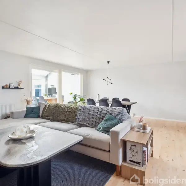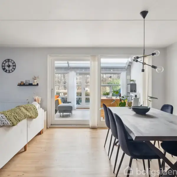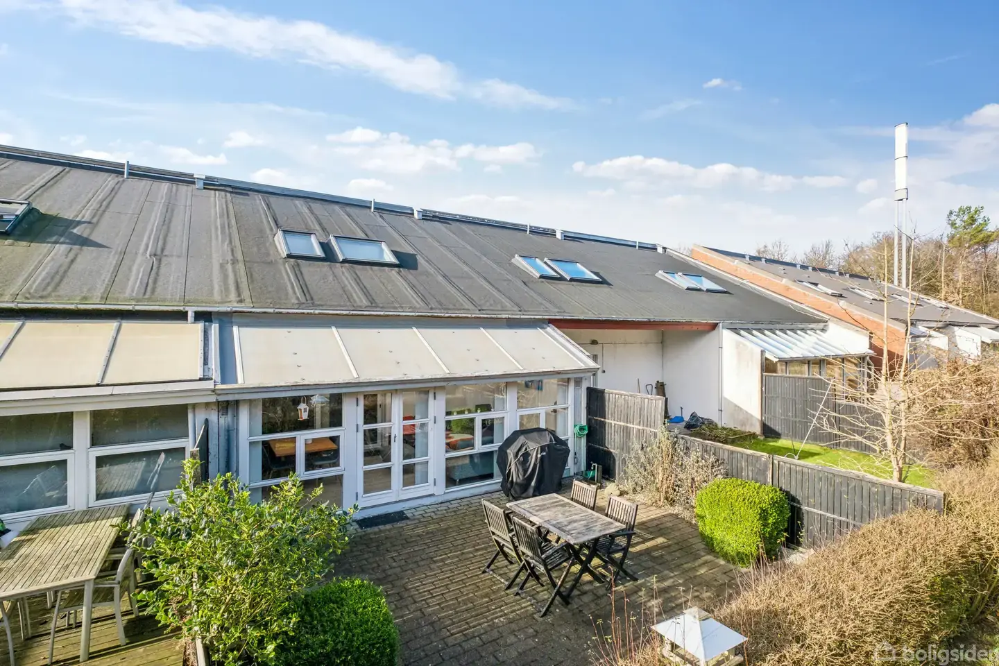 Indbydende opholdsrum med naturligt lysDette velholdte rækkehus fra 1980 byder på 105 m² funktionel og veludnyttet bolig med en behagelig, lys atmosfære. Boligens naturlige samlingspunkt er den rummelige og gennemlyste stue, hvor store vinduespartier sikrer et flot lysindfald og direkte adgang til den lyse udestue. Udestuen forlænger opholdsrummet og skaber en smidig overgang mellem inde og ude med kig til den private have. Indretningen er gennemtænkt med en centralt placeret trappe, der opdeler