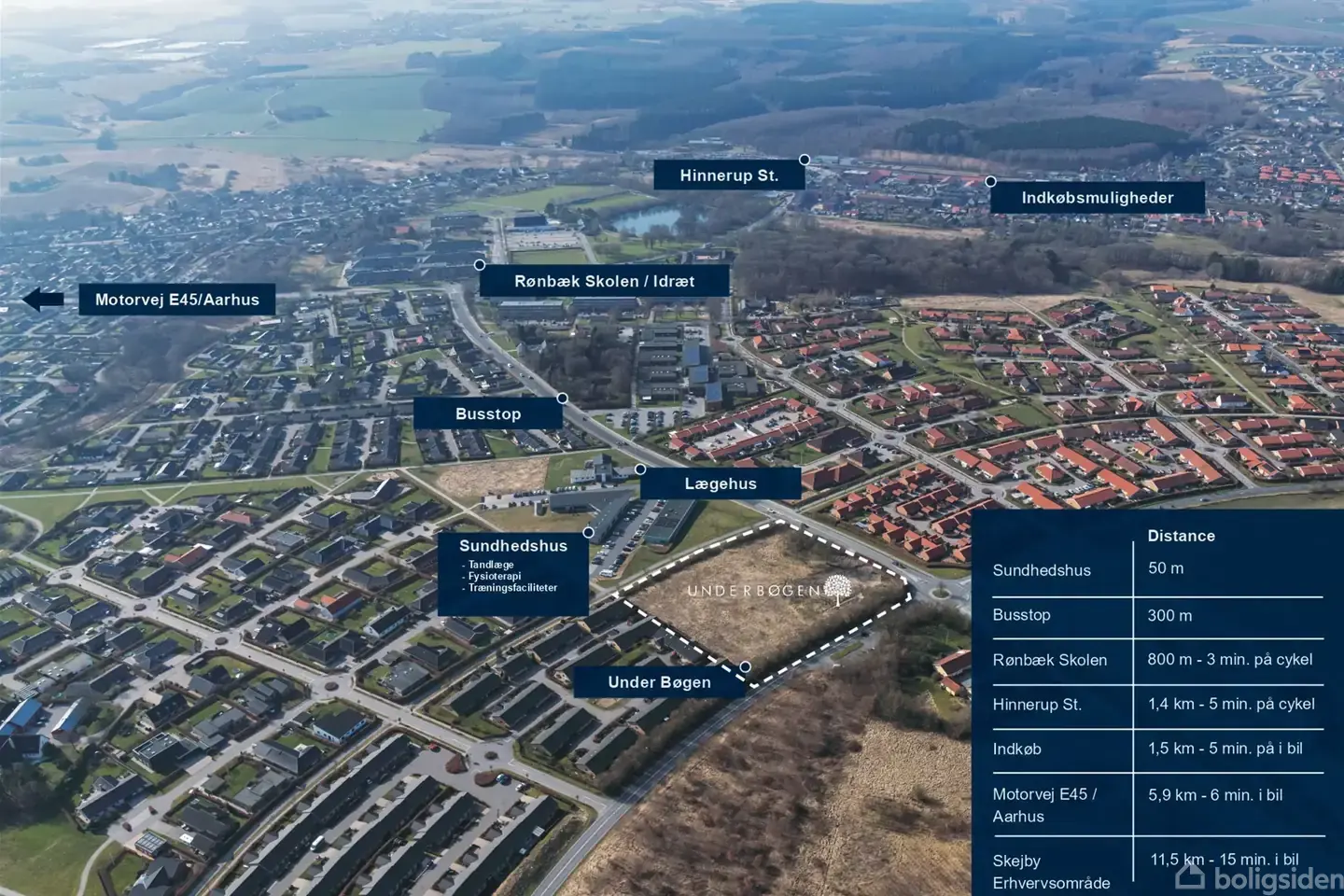 Under Bøgen kombinerer velindrettede rækkehuse med dejligt fælleshus, stort orangeri, grønne fællesområder og stærke værdier. Velkommen til Under Bøgen i Hinnerup, et nyt og attraktiv boligprojekt, hvor velindrettede boliger kombineres med adgang til lækre grønne opholdsrum mellem boligerne, foruden fælleshus og flot orangeri. Boligerne er klar til indflytning i foråret 2026. Allerede nu kan "sokler", grunden og byggeriet besigtiges på åbent hus eller ved fremvisning med mægler. Boligerne opføres af det lokale byggefirma, Thøgersen & Co som er anerkendt for at levere byggeri af høj kvalitet. Sælger og udviklerne af projektet har fra starten haft en vision om, at man ikke blot skal bo side om side, men man skal have mulighed for at være sociale sammen, og at omgivelserne indbyder til dette, når man ønsker det. Samtidig vil man have egen have, hvor man kan være for sig selv, og nyde omgivelserne, og den nye velindrettede bolig. Her bliver mulighed for tidligt i byggeprocessen, at få mulighed for at påvirke materialevalg i bl.a. køkken og bad, hvilket bliver leveret af Svane Køkken. Boligen: De rummelige 2 plans rækkehuse bliver opført i størrelserne 110 og 125 m². Denne bolig er på 125 m² og indrettes med 4 soveværelser på boligens 1. etage, hvor man også fnder boligens badeværelse med god bruseniche. Stueplan byder på god entré område med adgang til husets bryggers, som leder til gæstetoilet i stueplan. Derudover har man stort og lækkert Svane køkken i åben forbindelse med stuen, som byder på masser af plads til både spise og opholdsarealer. Boligen får udgang til gode opholdsarealer på begge sider af boligen, og masser af lysindfald. Attraktiv beliggenhed og familievenlige rammer Under bøgen ligger centralt i Hinnerup i forhold til mange af hverdagens gøremål og tilbyder kort afstand til skole, daginstitutioner, lægehus og idrætsfaciliteter gør området perfekt til alle målgrupper. Under bøgen kombinerer roligt forstadsliv med nærhed til Aarhus og Hinnerups byliv – inkl. indkøb, kultur og togforbindelse til Randers, Aarhus og Viborg. Hinnerup er en by i vækst, men med sjælen i behold. Et aktivt lokalsamfund, stærke naboskaber og gode fællesskaber gør det nemt at føle sig hjemme. Uanset om du søger et roligt seniorliv eller bare ønsker at være en del af noget større, er Hinnerup et sted, hvor du kan trække vejret dybt – og mærke, at livet giver mening. I Hinnerup finder du Rønbækskolen, HInnerup badet blot få 100 meter fra bebyggelsen og en af lang række veldrevne idrætsforeninger, som er med til at binde byen sammen, og skabe et helt unikt sammenhold.